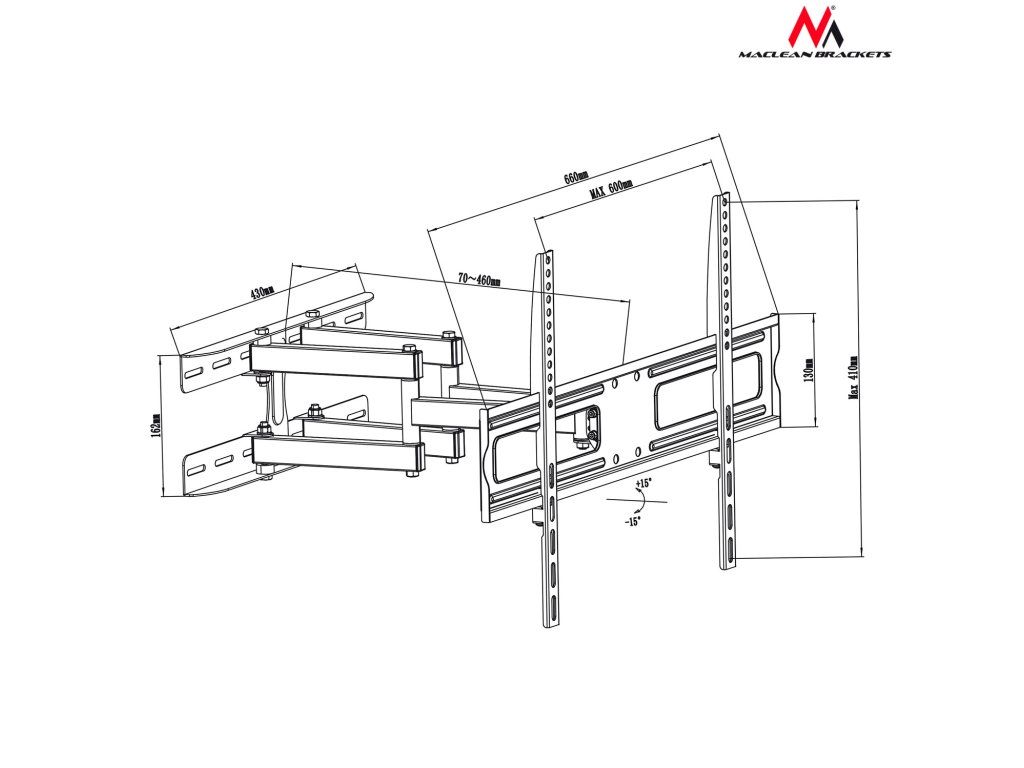 Držiak na TV alebo monitor 37-70" 30kg univerzálny Maclean MC-762 čierny max vesa 600x400