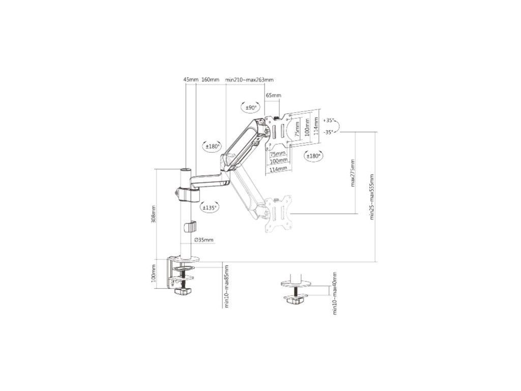 Používáním držáku monitoru Brateck předcházíte bolesti šíje a krční páteře. Umožňuje snadné nastavení monitoru na úroveň očí, čím zmírňuje svalové napětí ramen a krku. Držák monitoru Brateck LDT48-C012 je inovativní stolní držák, který byl navržen s ohledem na vaše potřeby a zlepšení pracovního prostoru. Tento všestranný držák s jedním ramenem a plynovou vzpěrou je ideální pro použití s různými typy monitorů, ať už pracujete z domova, v kanceláři nebo ve vzdělávacím prostředí. S držákem monitoru Brateck se vaše pracoviště stane efektivnějším a pohodlnějším. Díky odolné ocelové konstrukci poskytuje stabilní podporu pro jeden monitor s úhlopříčkou 17'' až 32'' a hmotností až 9 kg. Flexibilní konstrukce pro dostatečné nastavení výšky a pozorovacích úhlů s možností nastavení orientace monitoru na výšku nebo na šířku. Součástí balení jsou průchodky a svorky pro instalaci na téměř jakoukoliv pracovní plochu. Odnímatelná deska VESA pro uživatelsky přívětivou instalaci. Součástí balení jsou kabelové spony pro usnadnění organizace vedení kabelů. Hlavní vlastnosti: • Flexibilní nastavení polohy: Držák umožňuje snadné nastavení výšky pomocí plynové vzpěry, nastavitelný náklon monitoru v úhlu +35° / -35°, otočení monitoru o 360°, nastavení úhlů ramene o 180°, takže můžete snadno najít optimální pozici pro pohodlné a ergonomické používání. Odnímatelná deska VESA umožňuje snadnou instalaci monitoru. • Univerzální kompatibilita: Tento stolní držák je kompatibilní s většinou monitorů o velikosti od 17'' do 32'' a s VESA standardy 75x75mm a 100x100mm. Nezáleží na tom, zda používáte LCD, LED nebo OLED monitor, držák monitoru Brateck poskytne bezpečné a stabilní uchycení. • Odolná konstrukce: Držák je vyroben z vysoce kvalitního ocelového a hliníkového materiálu, který zajišťuje stabilitu a odolnost. • Snadná instalace: Držák je dodáván s kompletním montážním příslušenstvím, díky němuž je možné ho snadno namontovat na stůl během několika minut. Montáž je možná pomocí svorky na desky o tloušťce 10-85 mm nebo pomocí průchodky na desky o tloušťce 10-40 mm. Přednosti: • Zlepšuje ergonomii a pohodlí při práci s monitorem • Ušetří místo na vašem stole a pomůže udržovat věci organizované • Kompatibilní s širokou škálou monitorů a velikostí • Robustní a stabilní konstrukce pro dlouhodobé používání • Užijte si optimální pracovní prostředí a zvyšte svoji produktivitu používáním držáků monitorů Brateck. Díky nastavitelnosti a univerzální kompatibilitě vám tento produkt nabídne skvělý zážitek při práci na vašem počítači. Parametry: • Systém změny výšky monitoru: plynová vzpěra a posun na tyči • Maximální výška: 30,8 cm • Způsob montáže: svorka, průchodka • Dosah: 46,8 cm • Určeno pro zařízení: monitor • Ramena - počet monitorů: 1 • Maximální náklon (nahoru, dolů): +35/-35° • Maximální vychýlení (vpravo, vlevo): 180° • Maximální otáčení obrazovky: 360° • Nosnost ramene: 9 kg • Max. úhlopříčka obrazovky: 32' • USB připojení: ne • Barva: černá mat • Rozměry (Š x V x H): 538mm x 715mmx x114mm • Hmotnost: 3.3 kgDodatočné parametre