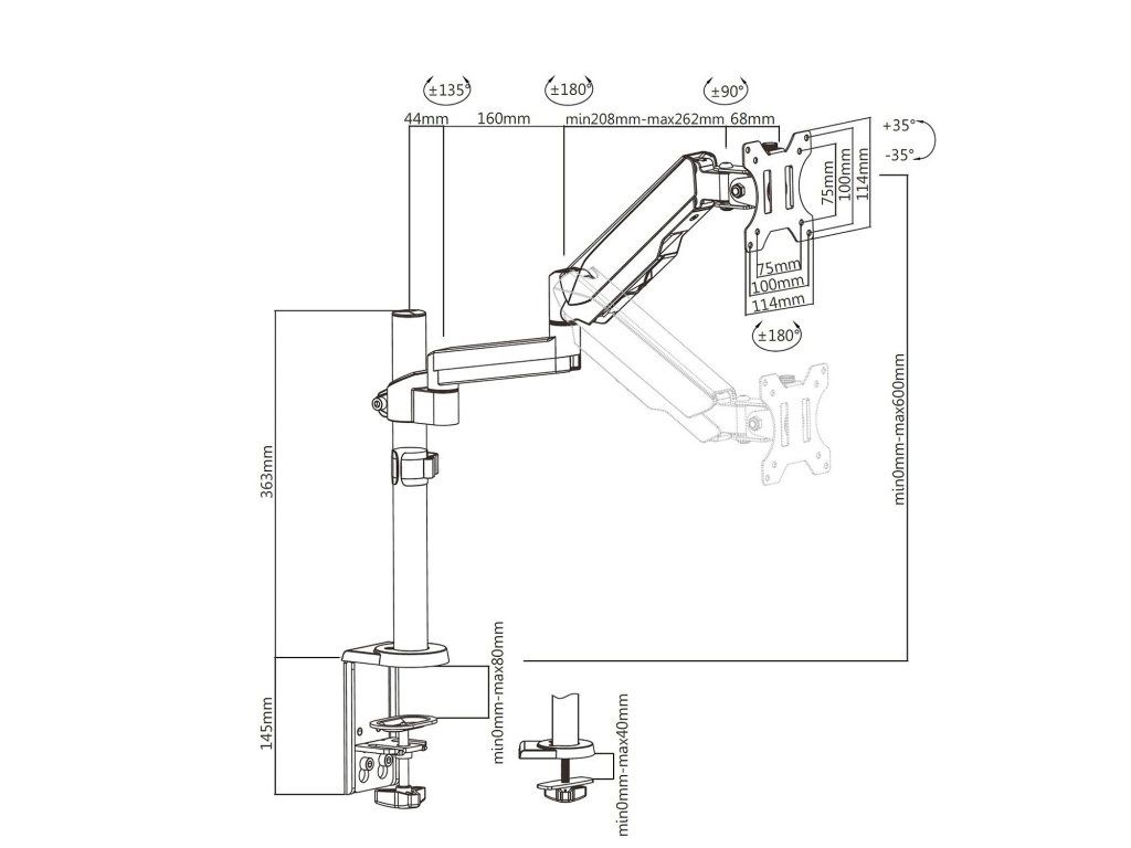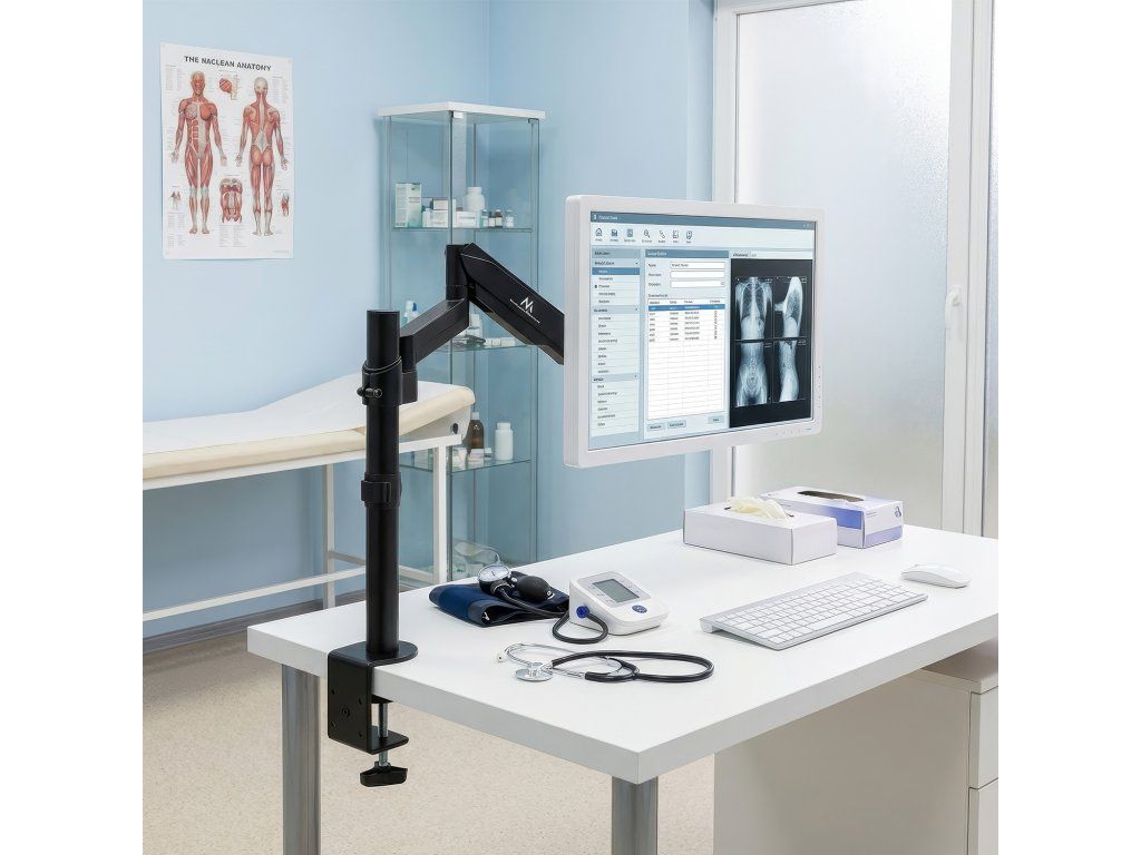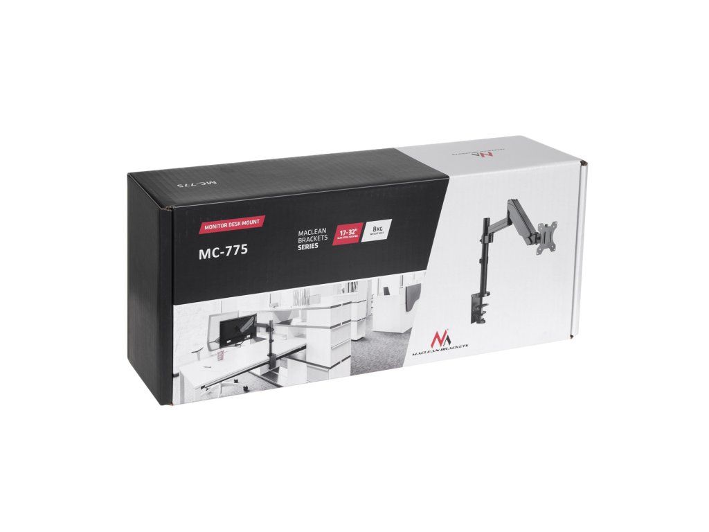 Stolový držiak na rameno monitora s plynovou pružinou! Univerzálny držiak LCD alebo LED monitora s možnosťou montáže na stôl alebo dosku stola. Vhodný pre 17" monitor - 32" s maximálnou hmotnosťou 8 kg.