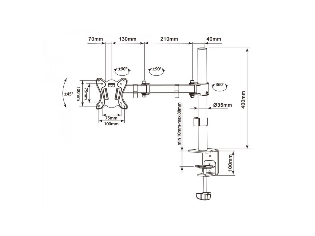 Odporúčaná hrúbka dosky stola: Svorka / montážna skrutka: 10 - 88 mm