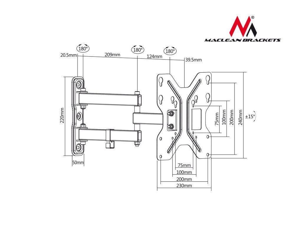 K držiaku môžeme ľahko pripevniť obrazovku v štandarde VESA: vESA: 75x75, 100x100, 100x200, 200x200 mm