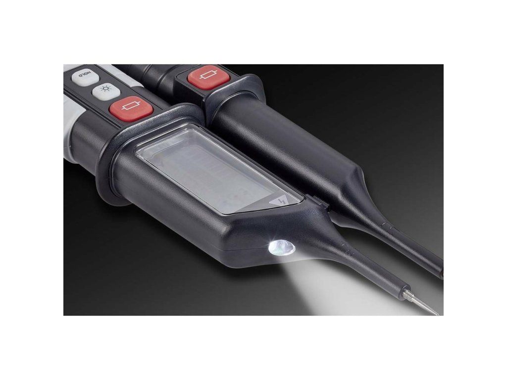Dvoupólový zkoušečka testována podle specifikací EN 61243-3:2010/VDE0682. Spolehlivě testuje napětí v elektrických systémech. Zobrazení napětí prostřednictvím bargrafu v rozsahu 12 - 1200 V na LCD.