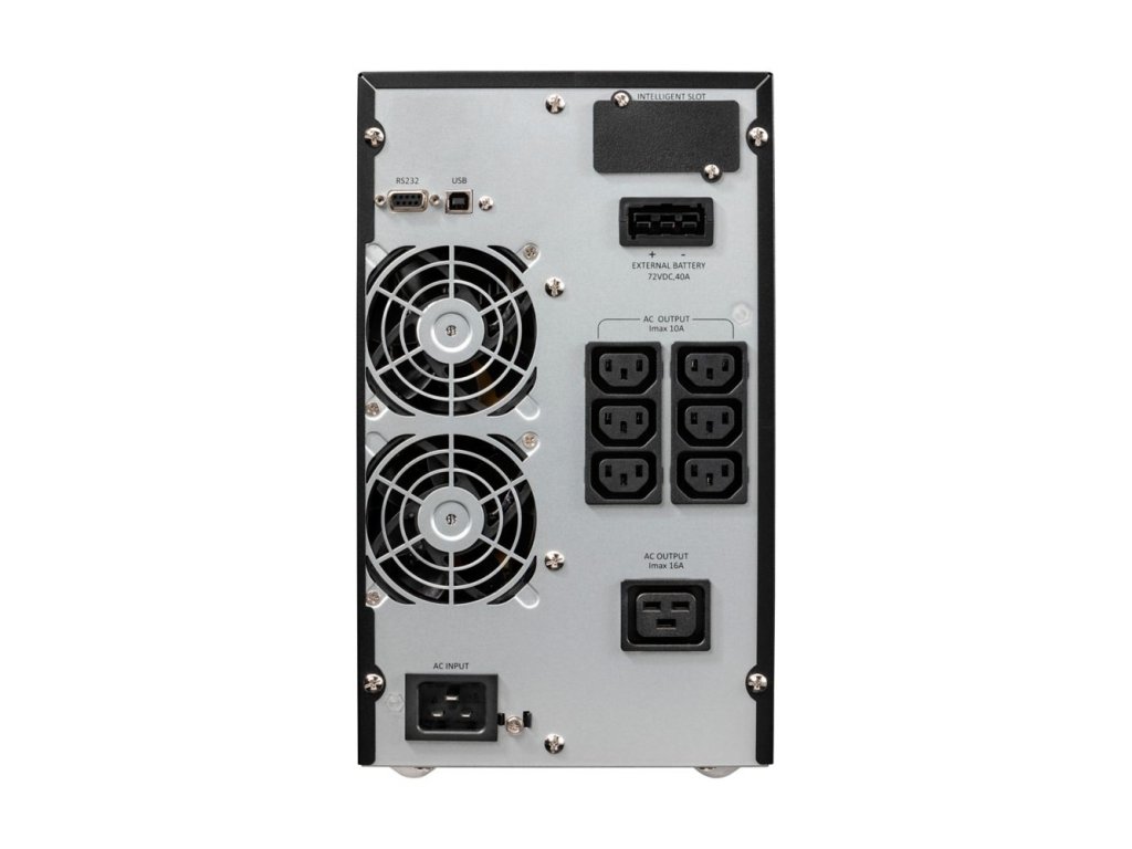 UPS Eaton 9E 3000i Záložní doba 100% zátěž: 5min Záložní doba 50% zátěž: 13,5min VÝSTUP Zásuvka: * 6x C13 * 1x C19 Výkon: 2400W Rozsah výstupního napětí: 220/230/240 V +/-2% Výstupní jmenovité napětí: výchozí nastavení 230V (220/230/240V) Výstupní účiník: 0,8 Topologie: online/dvojitý převod Typ křivky: sinusový výstup Jmenovitý výkon: 3000VA VSTUP Zapojení vstupu: C14 Vstupní jmenovité napětí: výchozí nastavení 230V (220/230/240V) Vstupní účiník: vyšší než 0,99 Jmenovitá frekvence: 50/60Hz Rozsah vstupního napětí: 176-300V (100-300V se snížením výkonu) Rozsah vstupní frekvence: 40-70Hz BATERIE Baterie: bezúdržbová, olověná Počet baterií: 6 Jmenovité hodnoty: 12V/9Ah KOMUNIKACE A SPRÁVA Ethernet: ne Uživatelské rozhraní: LCD displej Rozšiřující sloty: jeden slot pro volitelnou komunikační kartu Komunikace: * port USB (shoda s HID) * sériový port (RS232) * slot pro komunikační karty FYZICKÉ Hlučnost: méně než 37dB na 1m Rozměry: 330x190x399mm Hmotnost: 24,2kg Barva: černá Obsah balení: * UPS * USB kabel * sériový kabel * stručná příručka * bezpečnostní pokyny Odkaz na stránku výrobce: https://www.eaton.com/cz/cs-cz/skuPage.9E3000I.htmlDodatočné parametre