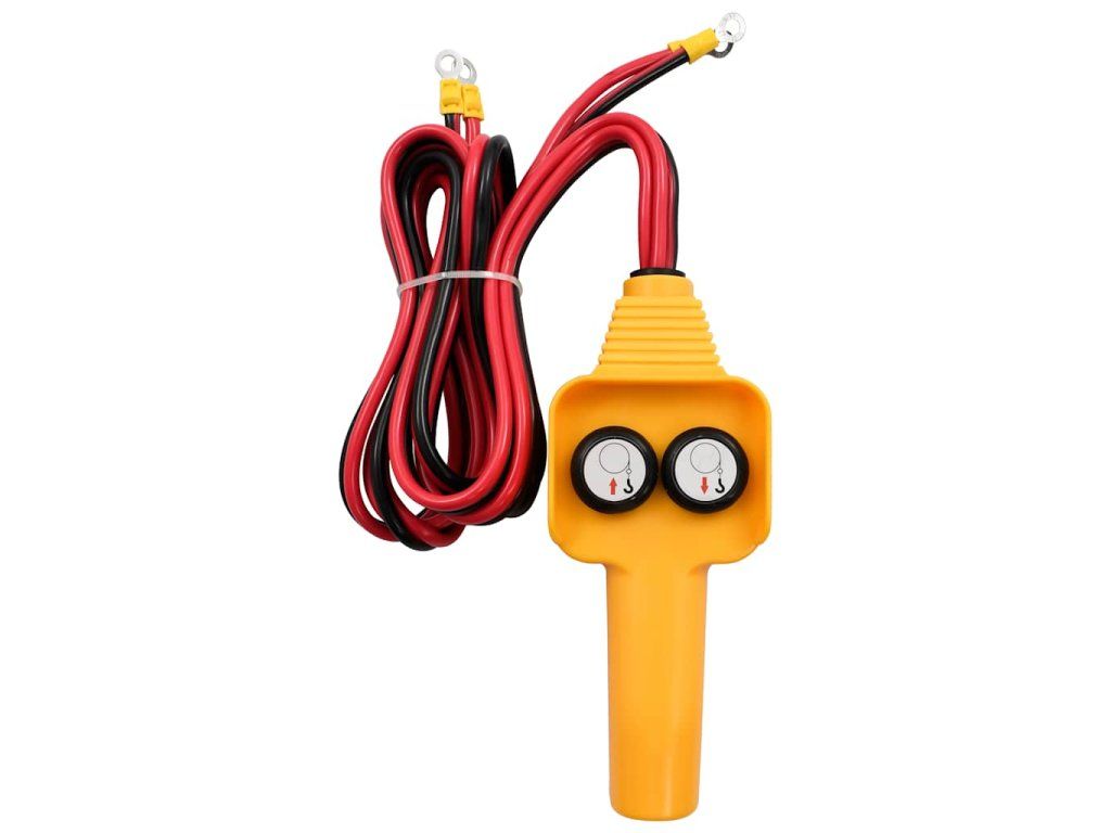 Balenie obsahuje: 1 x navijak, 1 x kábel pre diaľkové ovládanie, 1 x háčik s káblom, napájacím káblom a montážne príslušenstvo, ako sú skrutky a matice.