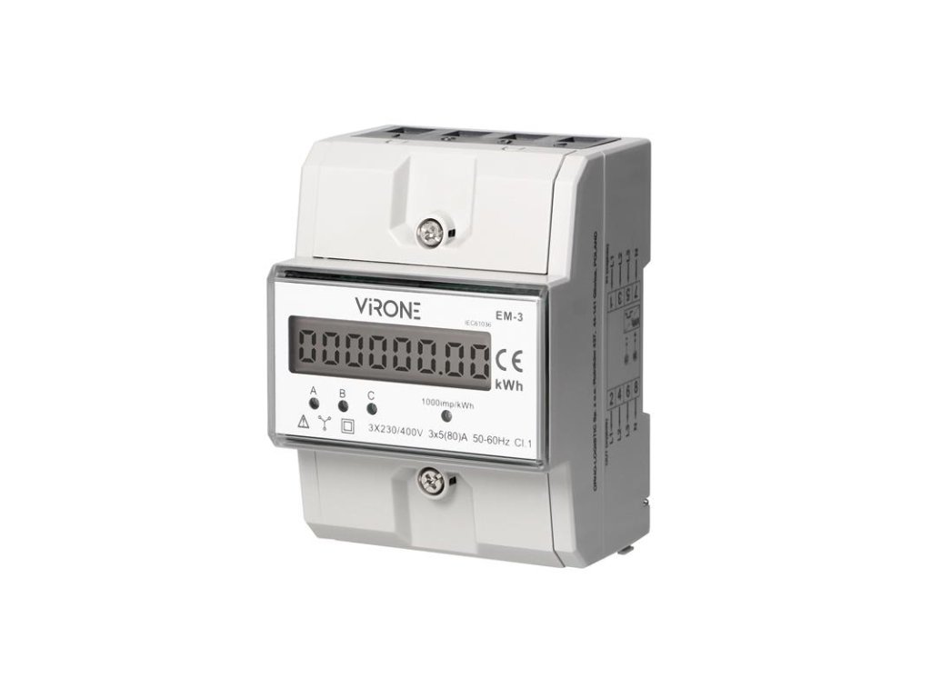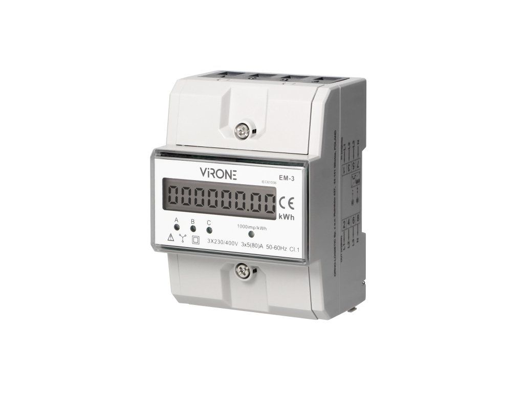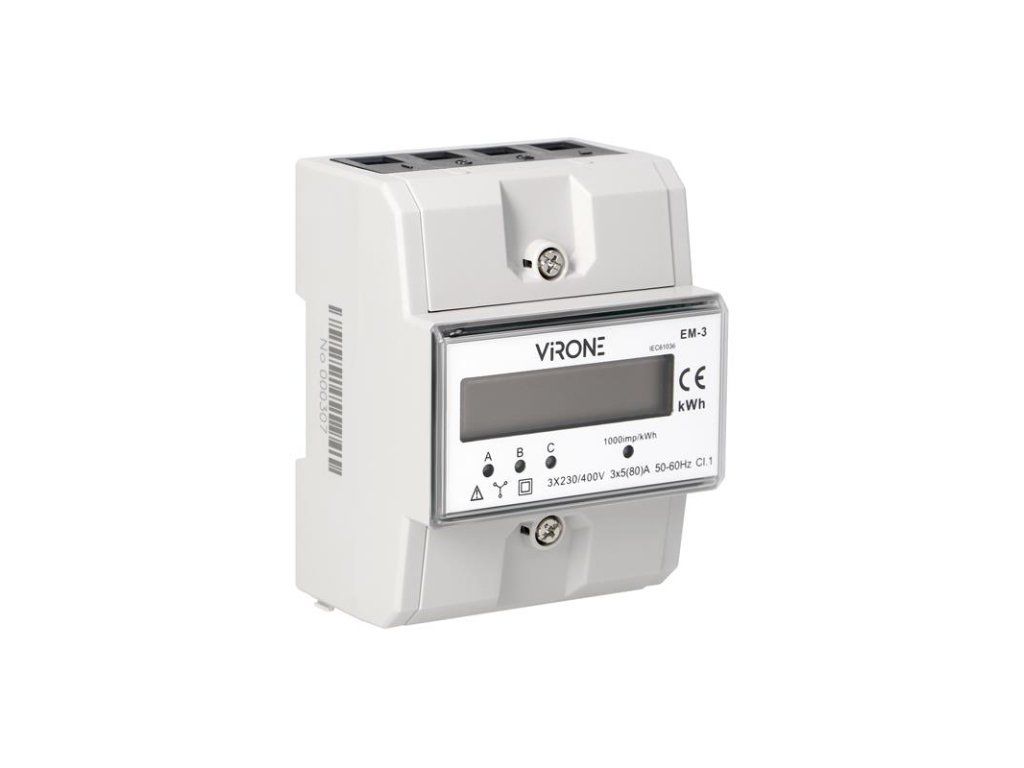 Elektroměr 3F na DIN lištu třífázový VIRONE EM-3 digitální