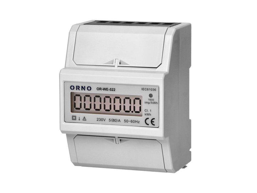 Elektromer digitálny na DIN lištu ORNO OR-WE-522, 80A, 3M, jednofázový, DIN TH-35mm