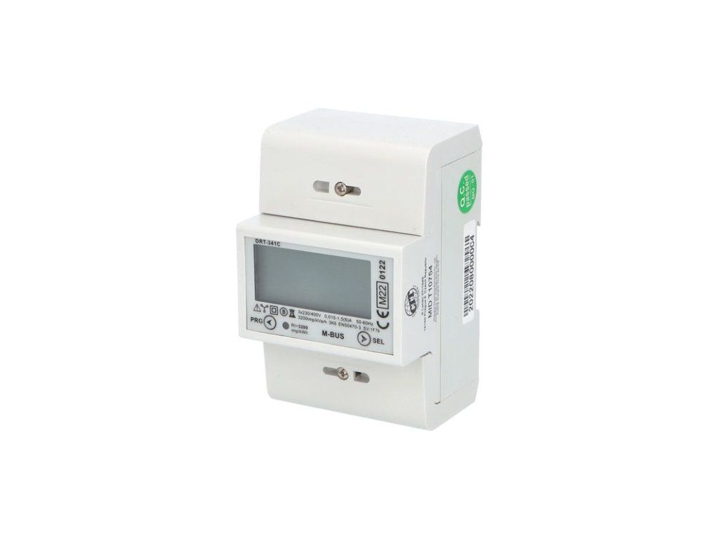 Podružný 3-fázový 1-tarifní digitální elektroměr pro nepřímé fakturační měření DRT-341C X/5A MID (certifikace MID), M-BUS komunikace