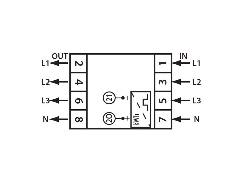 Elektroměr má impulzní výstup na svorkách (20) S0+ a (21) S0-. To umožňuje připojení externího zařízení, které počítá impulzy (S0 dle normy DIN 43864) generované elektroměrem. Ke správné funkci elektroměru se nevyžaduje zapojení tohoto doplňkového zařízení.