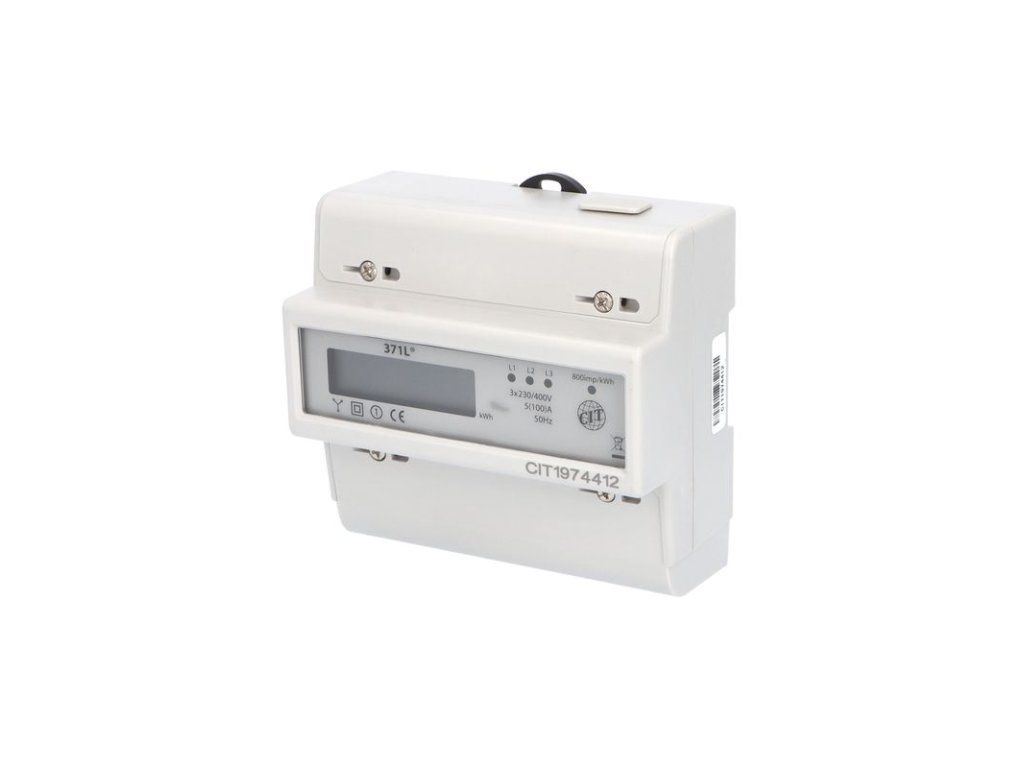 Elektroměr EDIN 371L, 100A, 7modulový, podružný, 3-fázový, 1-tarifní, LCD. Třífázový elektroměr s LCD displejem pro střídavé napětí 3x230 V / 400 V, 50Hz, slouží k měření činné elektrické energie v přímém zapojení do obvodu. Je určen na podružné měření spotřeby samostatných spotřebičů nebo spotřebičů ve skupinách.