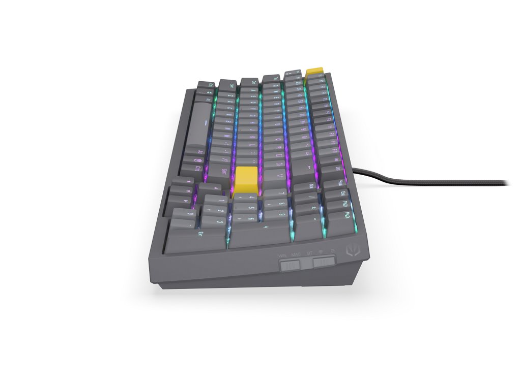 ENDORFY Celeris 1800 *Univerzální rozložení 1800 s plnohodnotnou numerickou klávesnicí *Kompatibilní se systémy Windows a macOS *Připojení přes Bluetooth, 2,4GHz dongle nebo USB kabel *Funkce SideTune *Dvouvrstvé silikonové tlumení pro eliminaci vibrací a hluk *Horní deska z materiálu FR4 pro lepší pocit při psaní *Z výroby promazané spínače ENDORFY Yellow by Gateron *Navržena pro plynulé a rychlé psaní *Software pro personalizaci nastavení klávesnice Specifikace Typ klávesnice: mechanická Barva: šedá Rozložení: US ANSI Rozměry: 384 × 129,5 × 44,6 mm Počet kláves: 100 Typ spínačů: ENDORFY Yellow by Gateron Barva spínačů: žlutá Podpora hot-swap: ano Materiál kláves: PBT Typ podsvícení: ARGB Možnosti připojení: -USB (délka kabelu 1,8 m) -Bluetooth -Bezdrátové připojení 2,4 GHz Příkon při nabíjení: 0,24 W–3,75 W Podpora Power Delivery standardu: ne Kompatibilita: Windows macOS Linux Android Kompatibilita softwaru: Windows 10 nebo novější Záruka: 24 měsícůDodatočné parametre