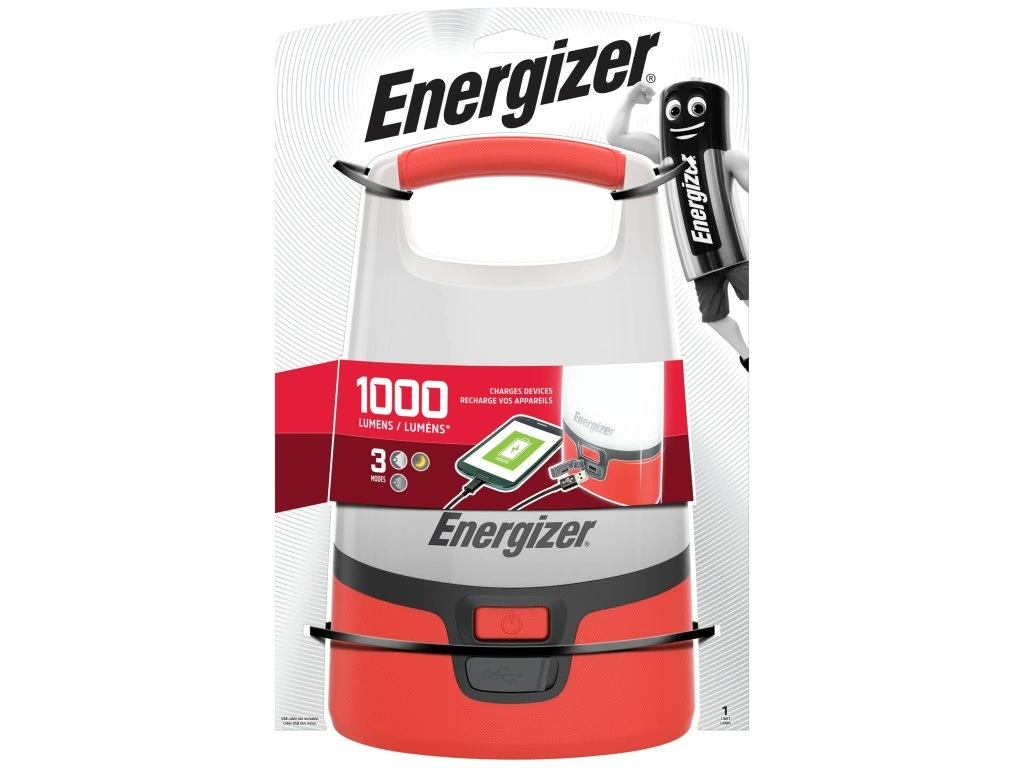 Kempingová lucerna Energizer USB Lantern s funkciou Power Bank poskytuje spoľahlivé 360stupňové osvetlenie pre outdoorové aktivity, núdzové situácie a dá sa tiež použiť na nabíjanie zariadení cez USB port. S pohodlným protišmykovým držadlom uľahčuje prenášanie. Možno stlmiť svetelný výkon pomocou funkcie stmievania alebo pri nočnom svetle použiť režim nočného svetla.