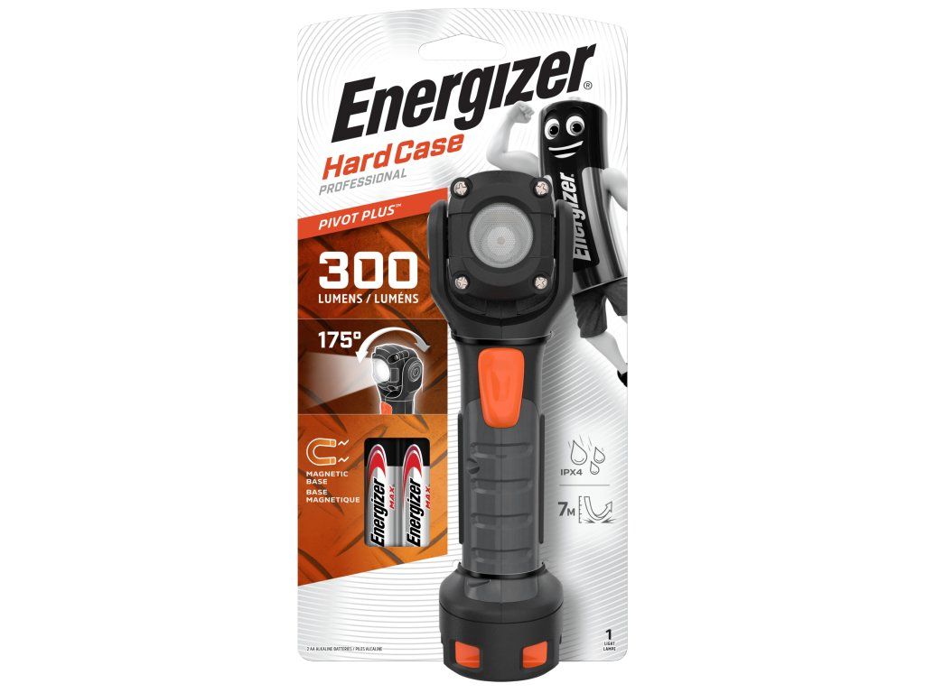 Energizer HardCase Pivot je LED pracovné svietidlo pre rôzne použitie. Je vodotesné (IPX4) a nárazuvzdorné (7 m). Vďaka veľkému tlačidlu nie je prevádzka problém ani v rukaviciach. Má otočnú hlavu o 175 stupňov a svetlo nasmeruje na objekty vzdialené aj 30 m.