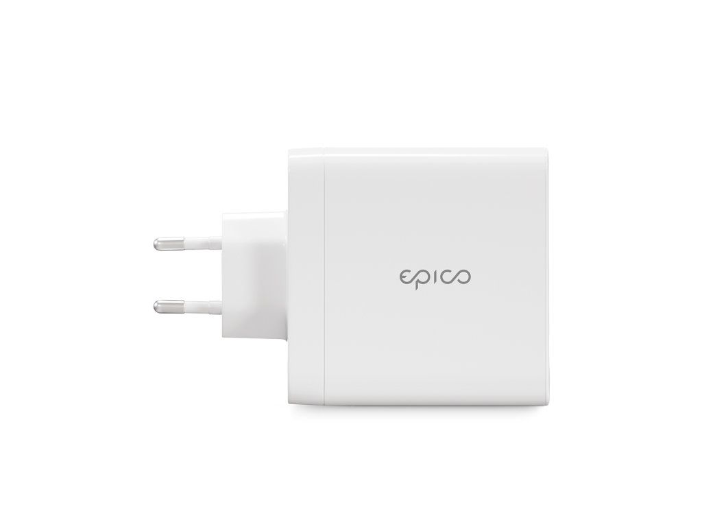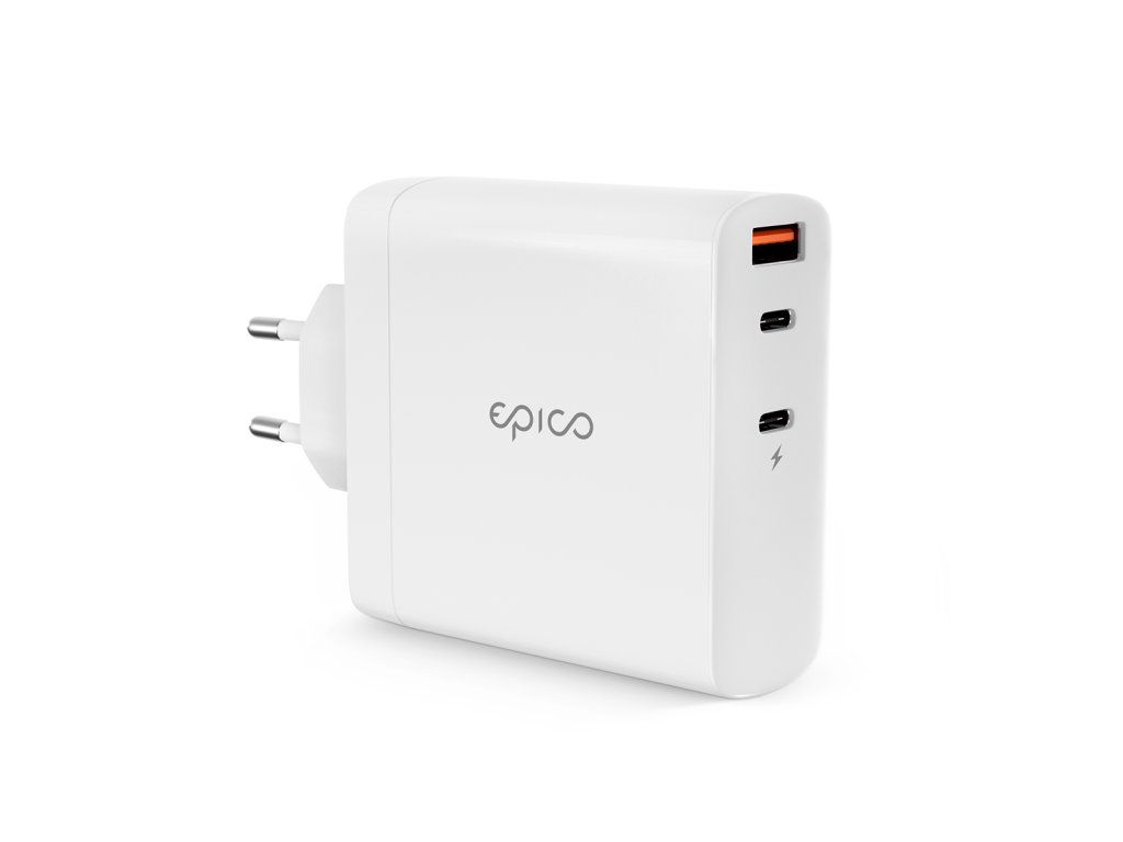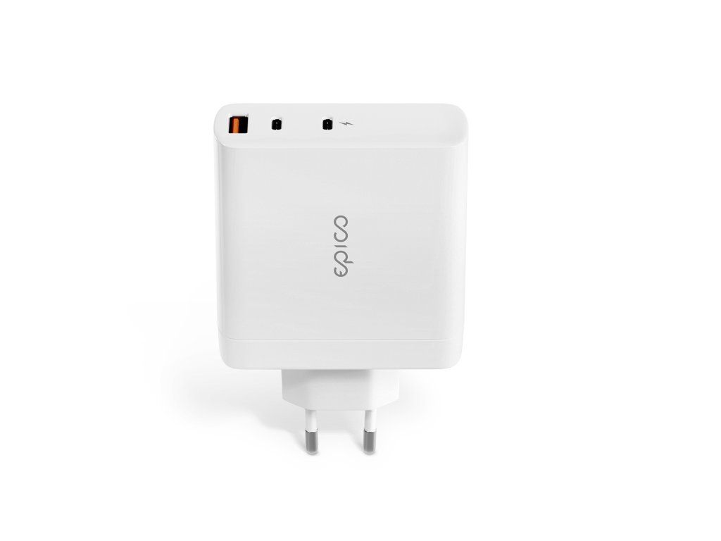 Epico 140W GaN Charger je výkonný adaptér s vysokým výkonem až 140 W. Spotřebu energie má díky GaN (nitrid gallitý) technologii minimální a nabíječka se nepřehřeje ani při vysoké zátěži. Pomocí dvou USB-C a jednoho USB-A portu nabijete efektivně všechna svá zařízení, například MacBook, iPhone, iPad nebo Apple Watch. Adaptér inteligentně rozdělí výkon mezi jednotlivými porty. Využijete ho k práci doma, v kanceláři i na cestách. Díky standardu Power Delivery 3.1 je nabíječka připravena na nejnovější generaci kabelů USB-C, se kterými dosáhne výkonu až 140 W. Uživatelský komfort podtrhuje nízká váha a středová zástrčka 220 V pro stabilitu v zásuvce. Vstupní napětí/proud: 100-240 V (50-60 Hz) 2 A, Výstup USB-C PD: 140 W max., Výstup USB-C PD: 100 W max., Výstup USB-A: 30 W max., Maximální výkon: 140 W Materiál: PC, Rozměry: 73×110×29 mm, Hmotnost: 270 gDodatočné parametre