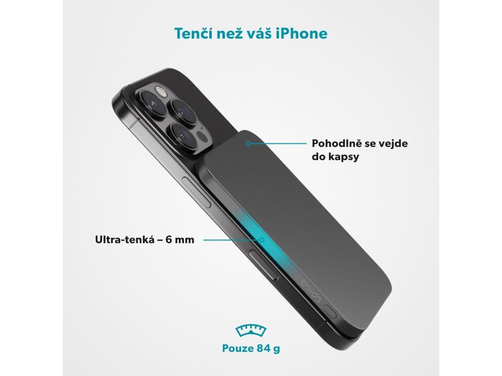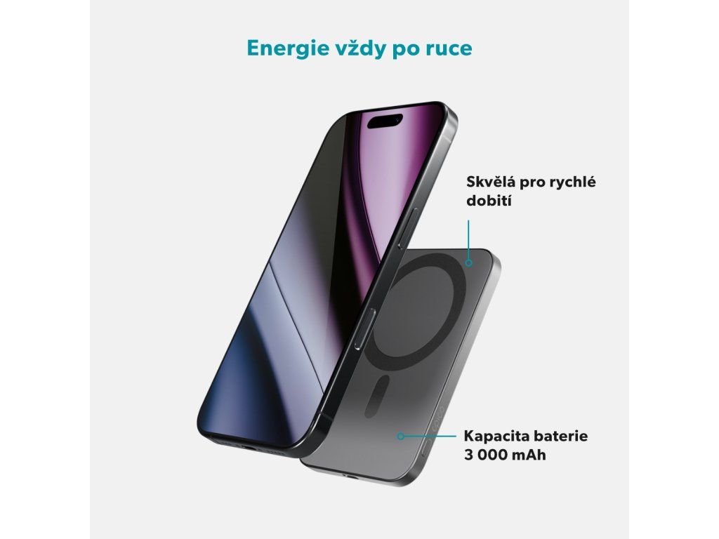 Ultra-tenký design Kompatibilita MagSafe a Qi2: Bezproblémové bezdrátové nabíjení s bezpečným magnetickým uchycením. Ultra-tenký design: S ultra-tenkým profilem pouhých 6 mm se pohodlně se vejde do kapsy. Kapacita 3 000 mAh: Poskytuje spolehlivé záložní nabíjení, dostatečné pro dobití iPhonu 16 Pro až na 50 %.* Bezdrátový výstup: Efektivní bezdrátové nabíjení s maximálním výkonem 7,5 W. USB-C výstup: Rychlé nabíjení přes USB-C s maximálním výkonem 10 W. Hliníkové tělo: Prémiové a odolné hliníkové tělo zabraňuje přehřívání. Šestinásobná ochrana: Vybaveno ochranou proti přepětí, přebití, přetížení, nadměrnému vybití, nadproudu a zkratu. Součástí balení: 0,3m USB-C na USB-C kabel. *Výsledky se mohou lišit v závislosti na okolních faktorech, způsobu nabíjení (bezdrátové nebo kabelové) a nastavení zařízení.Dodatočné parametre