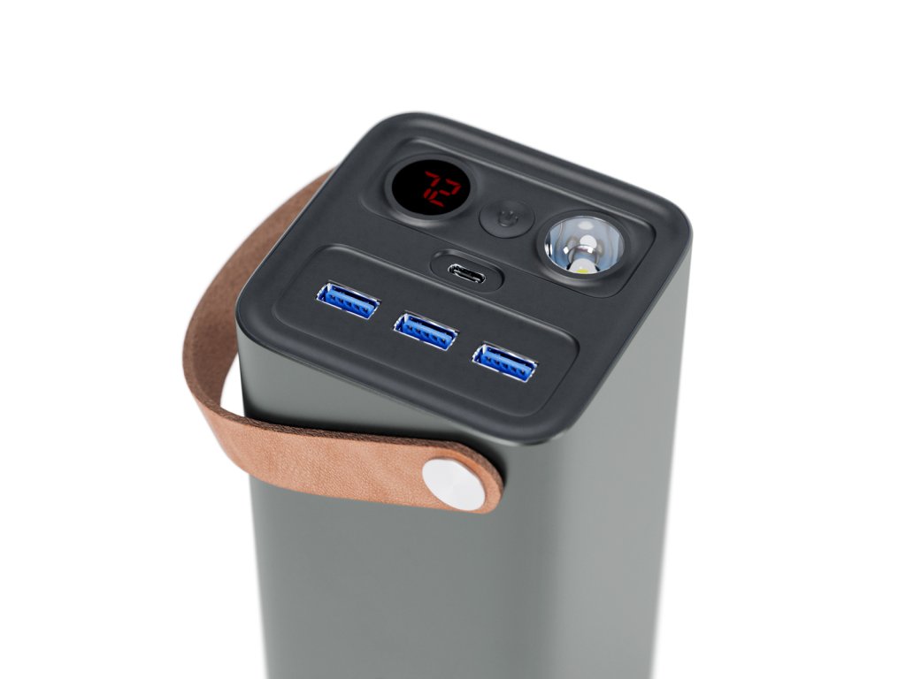 Epico Multifunctional Aluminium Power Bank je vysokokapacitní powerbanka, která zvládne nabít všechna vaše zařízení. Odolný hliníkový plášť nejen chladí vnitřní součástky, ale dodává powerbance elegantní vzhled. Powerbanka s kapacitou 46 200 mAh nabízí spoustu funkcí a disponuje celkem pěti výstupy. K dispozici jsou tři USB-A porty, z čehož dva s max výkonem 12 W a jeden s 18 W. Čtvrtým je USB-C PD port, který dosahuje maximálního výkonu 65 W a díky kterému nabijete například i MacBook Pro 14”. Powerbanka funguje i jako zásuvka (220 V AC) a umožňuje nabíjení chytrých telefonů nebo MacBooků, ale také mini ledniček, televizorů či dronů až do maximálního výkonu 150 W. Vnější poutko zajistí snadné přenášení, indikátor na displeji a LED svítilna maximální pohodlí při použití. Další užitečné funkce jsou aktivní chlazení ventilátorem a ochrana proti přetížení/zkratu Dobíjení baterie PD chargerem trvá šest hodin. Kabel USB-C na USB-C je součástí balení. Kapacita baterie: 46 200 mAh, Výstup USB-C: 65 W max., Výstup USB-A: 18 W max., 2x výstup USB-A: 12 W max., AC výstup: 220 V (50 Hz) 150 W max., Materiál: slitina hliníku, ABS, PC, Rozměry: 81×232×81 mm, Hmotnost: 1 800 gDodatočné parametre