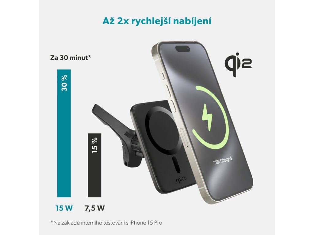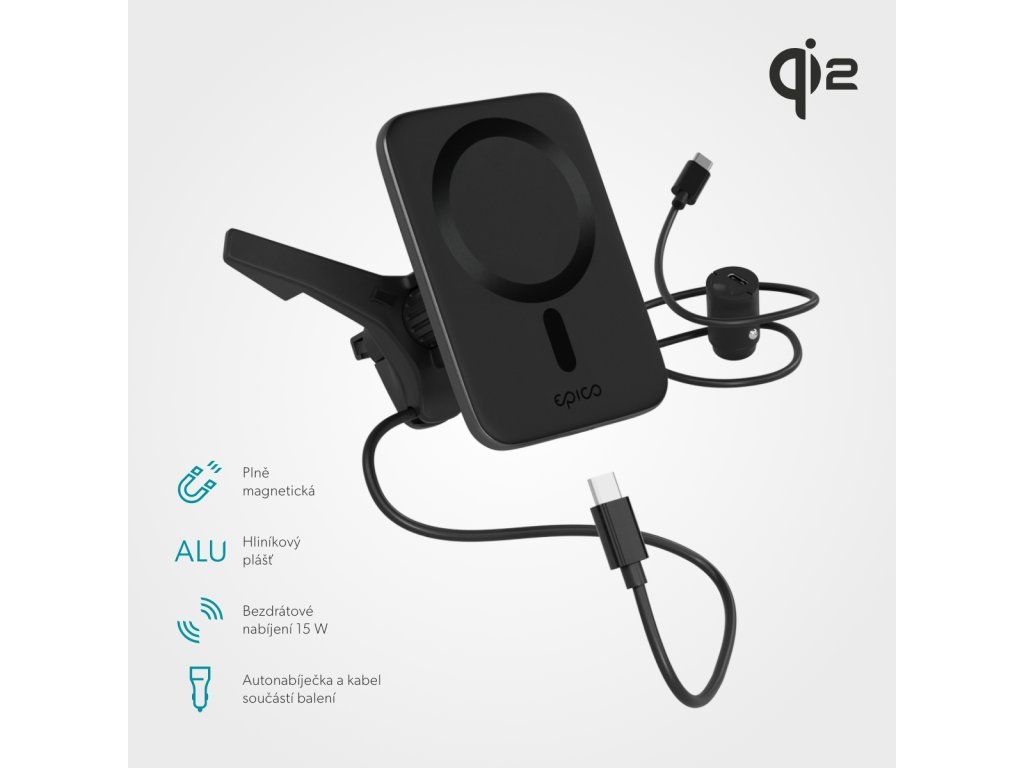 Epico Qi2 Mag+ ultra tenká autonabíjačka - čierna