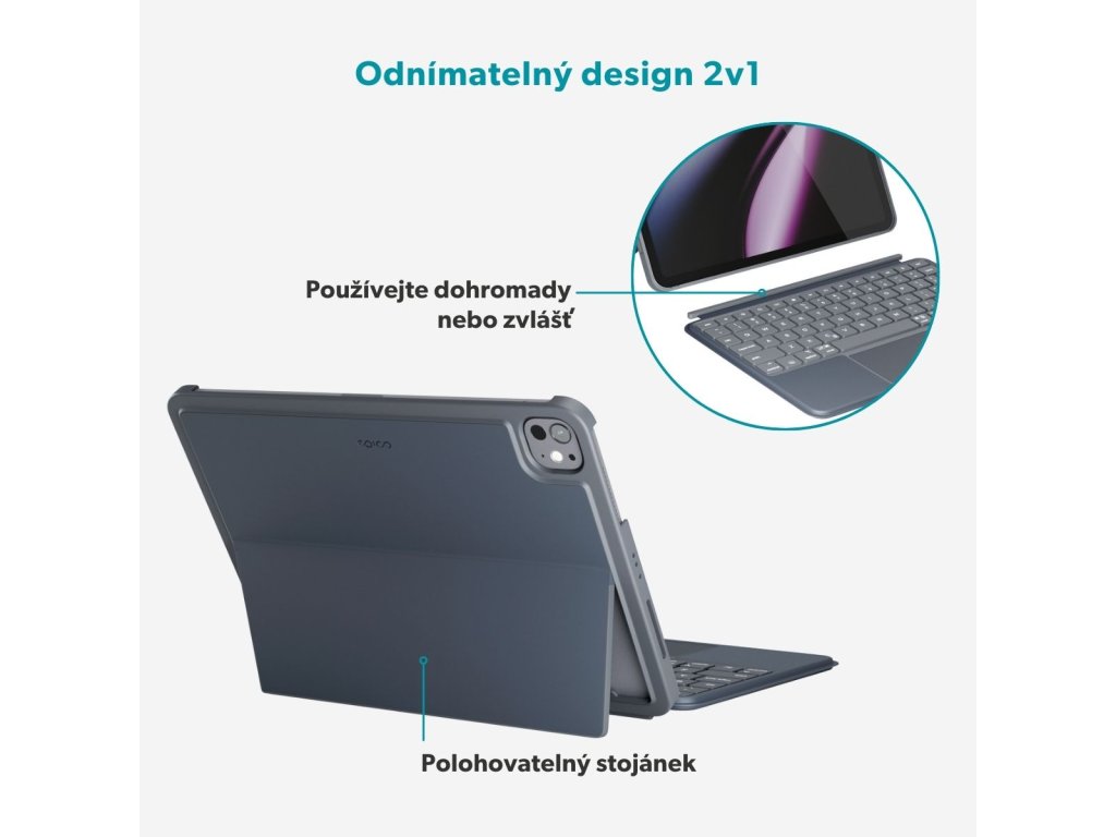 Odnímatelné pouzdro s klávesnicí pro flexibilní použití Epico UltraBoard EK30 ochrání váš iPad a zároveň ho promění v plnohodnotný pracovní nástroj. Magnetický 2v1 design umožňuje pouzdro snadno odejmout a používat jej samostatně pro ochranu, nebo jej rychle připojit ke klávesnici a vytvořit z iPadu notebook. Větší a vylepšený trackpad přináší intuitivní navigaci s podporou multi-touch gest, díky čemuž je posouvání a navigace intuitivnější. Klávesnice má bílé statické podsvícení s nastavitelným jasem, které lze v případě potřeby zcela vypnout. Komfortní psaní a dlouhá výdrž Klávesy s vylepšenou ergonomií zajišťují plynulé a pohodlné psaní, zatímco polohovatelný stojánek poskytne ideální úhel pro práci i sledování obsahu. Nezávislá baterie klávesnice vydrží až 5 hodin provozu s podsvícením nebo 55 hodin bez něj a rychle se dobíjí přes USB-C kabel, který je součástí balení. Spolehlivé Bluetooth připojení zajistí bezdrátovou svobodu a pracovní prostor bez zbytečných kabelů. Duté provedení stojánku navíc podporuje lepší proudění vzduchu a chrání zařízení před přehříváním.Dodatočné parametre