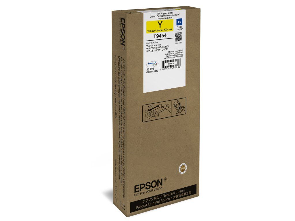 Balení Typ balení: Jednotlivé balení Technologie Obsah: 1 x 38,1 ml Žlutá Výtěžnost: 5 000 stran Technologie: DURABrite™ Ultra Zkratka: T9454 Velikost: XL Vhodná hlavní zařízení: WorkForce Pro WF-C5210DW WorkForce Pro WF-C5290DW WorkForce Pro WF-C5710DWF WorkForce Pro WF-C5790DWFDodatočné parametre
