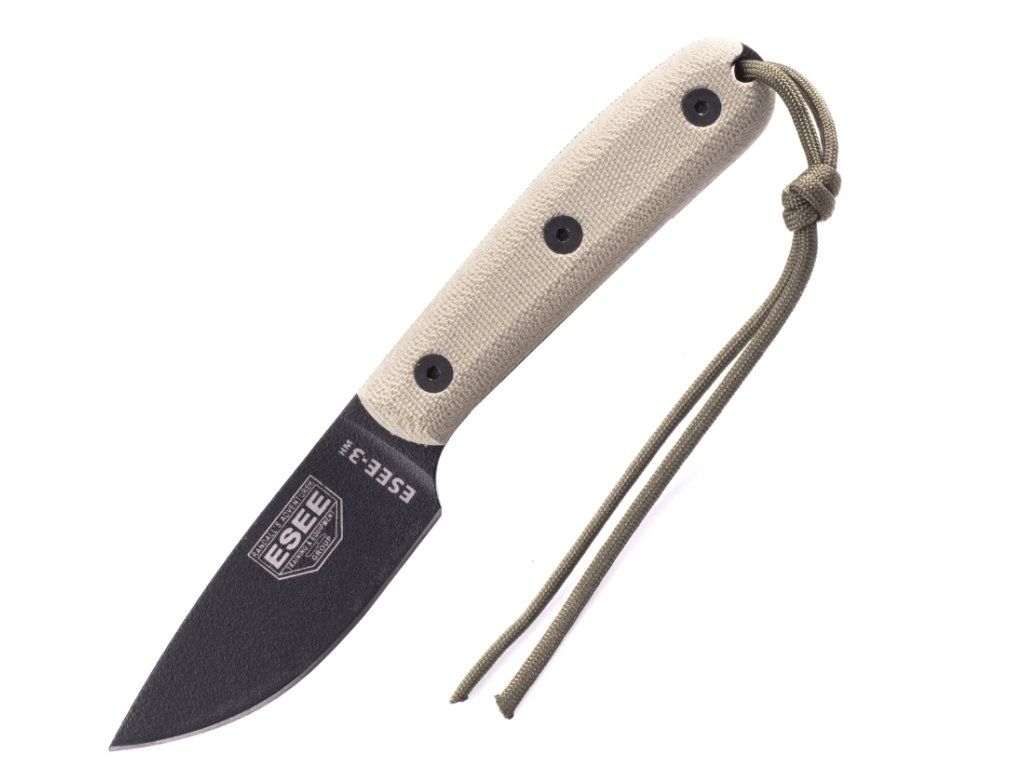 ESEE -3HM-B Plain Edge nôž na prežitie 9,2cm, krémová, čierna, Micarta, puzdro