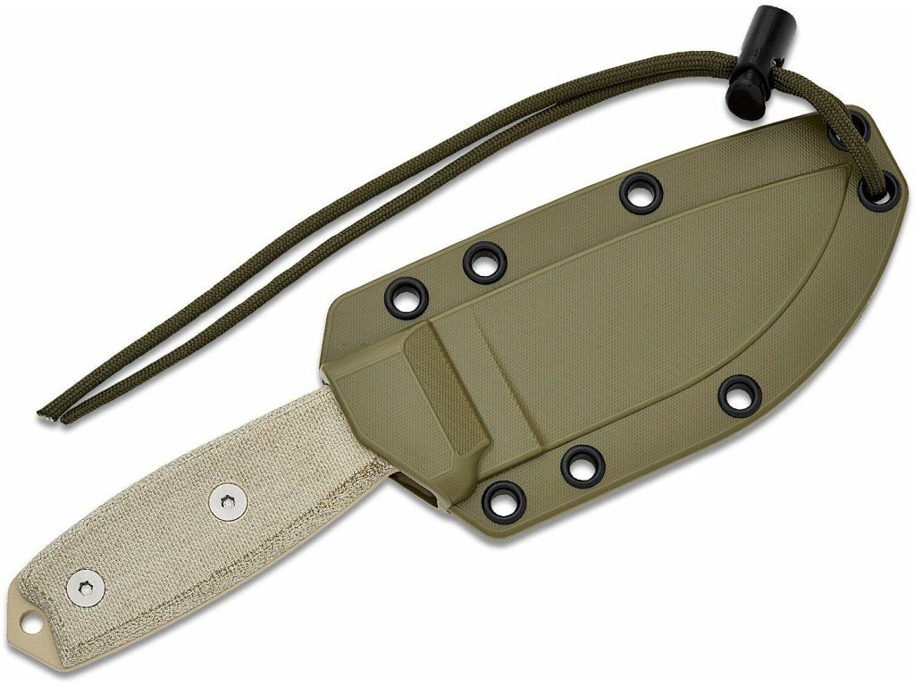 ESEE-3P-MB-DT ESEE univerzálny pevný nôž 9,8cm, pieskovo-hnedá, Micarta, plastové puzdro OD Green