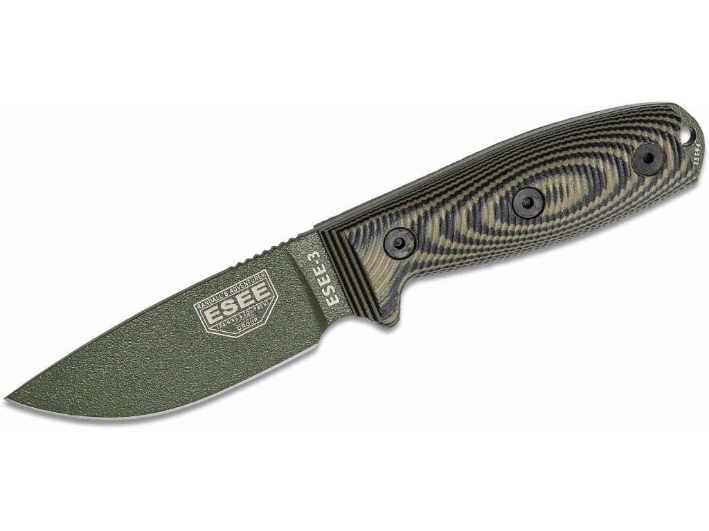 ESEE 3PMOD-003 MODEL 3 taktický outdoorový nôž 8,8 cm, čierno-zelená, G10, puzdro Kydex