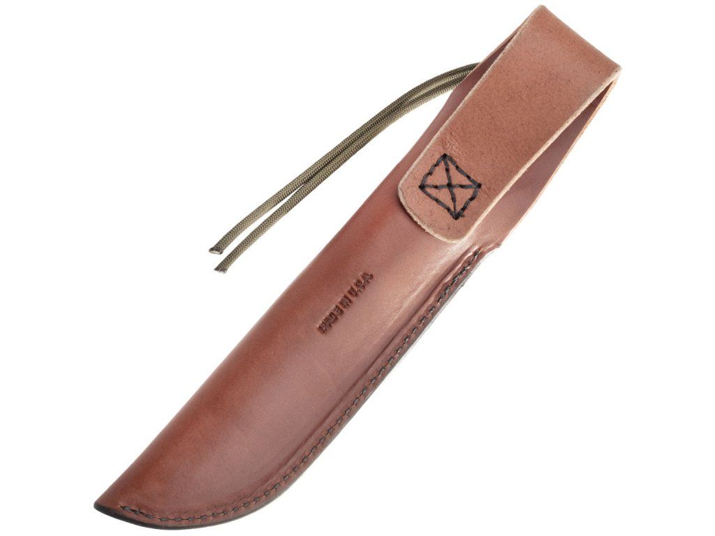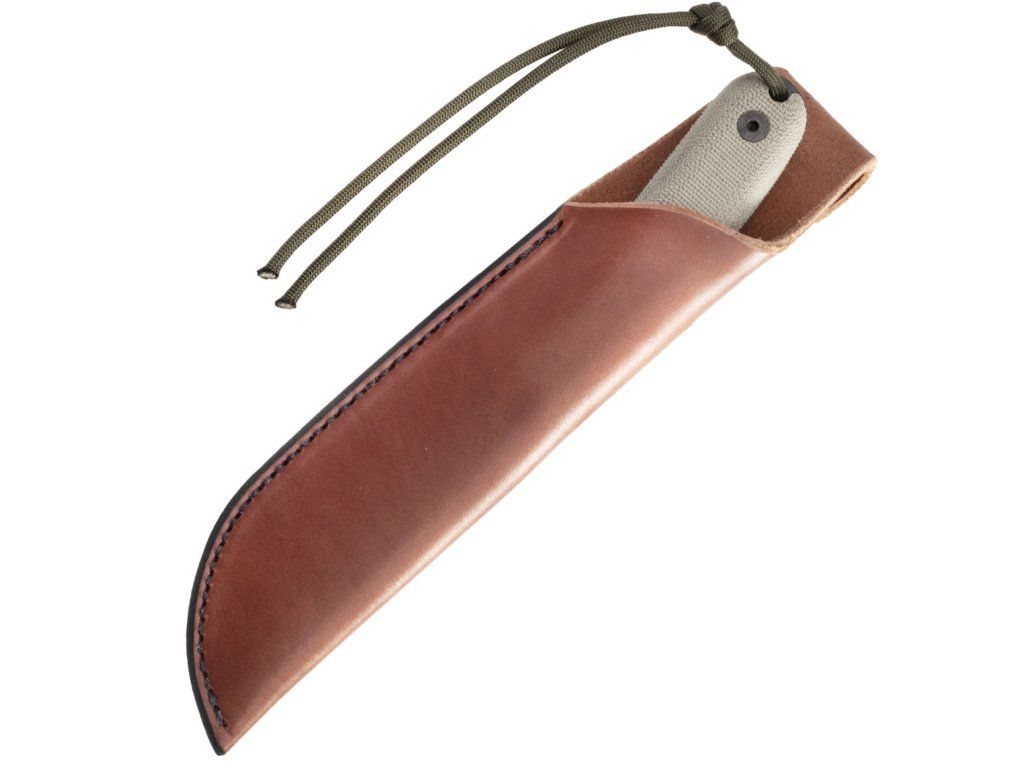 Rukoväť je z kompozitu Micarta olivovej farby s otvorom na šnúrku.