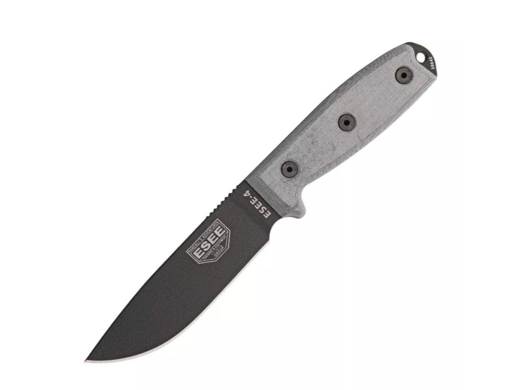 ESEE-4P-B univerzálny nôž 11,4 cm, čierna, šedá, Micarta, pripínacie čierne plastové puzdro