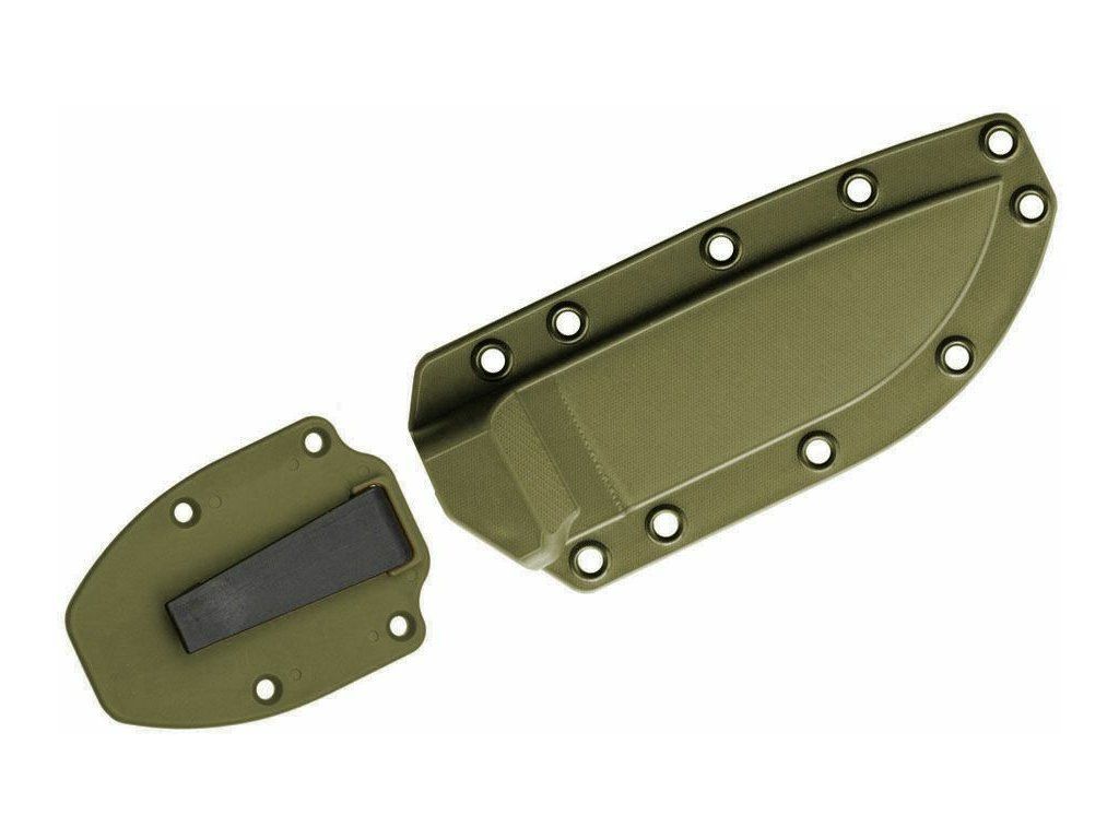 ESEE-4P-DT univerzálny nôž 11,4 cm, pieskovo hnedá, Micarta, pripínacie zelené plastové puzdro