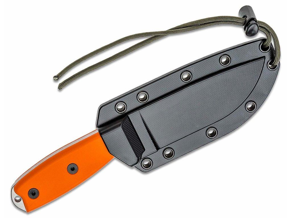 Rukoväť je z materiálu G10 oranžovej farby, v spodnej časti má krúžok na kľúče.