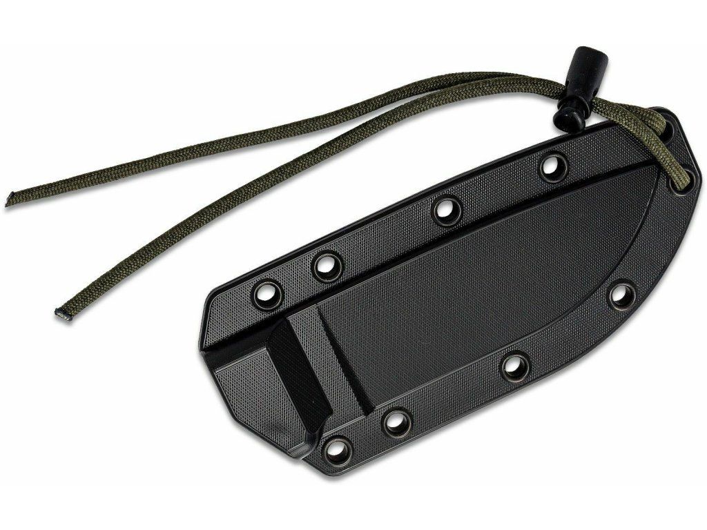 S pevnou čepeľou s hladkou hranou z uhlíkovej ocele 1095 s neónovo zelenou práškovou povrchovou úpravou proti korózií. Prechádza celým nožom (full-tang).