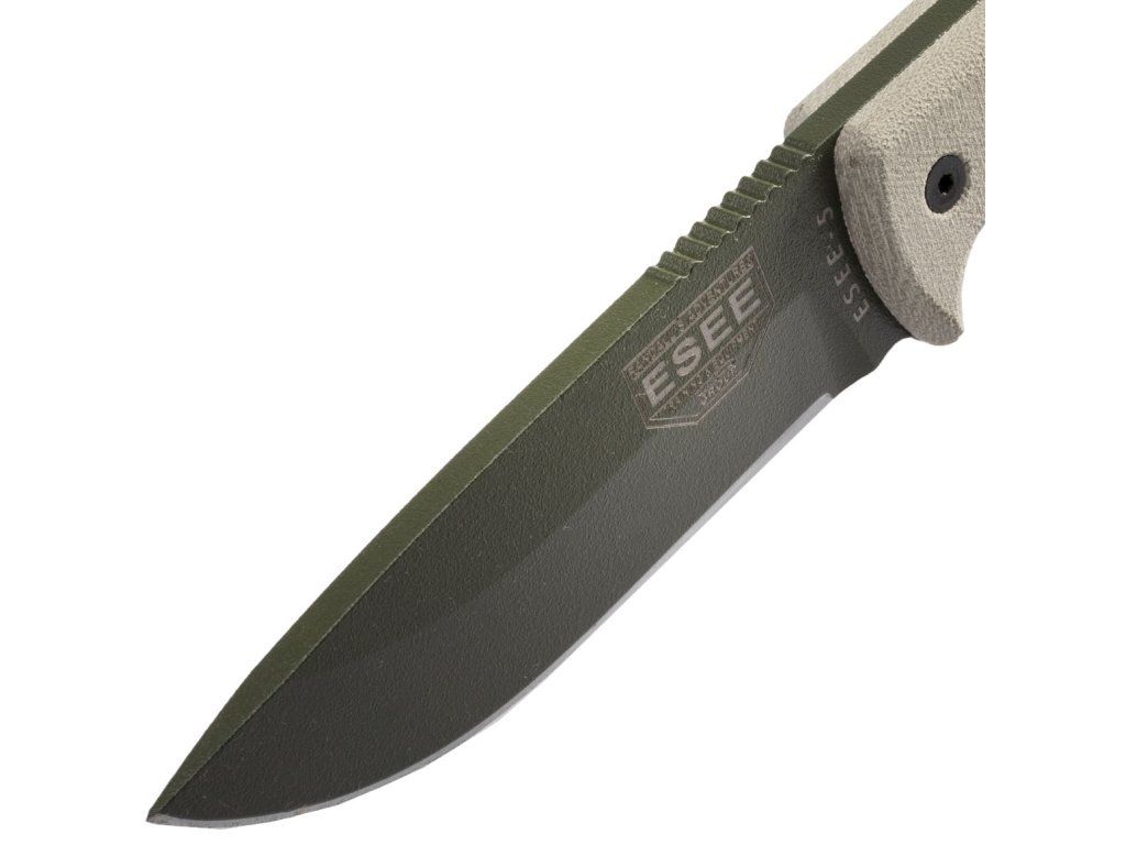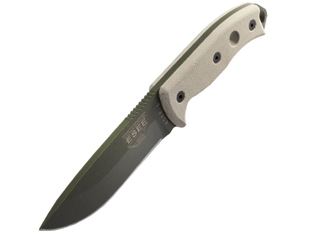 ESEE-5P-OD-E Model 5 nôž na prežitie 13,3 cm, olivovo-zelená, krémová, Micarta, puzdro Kydex