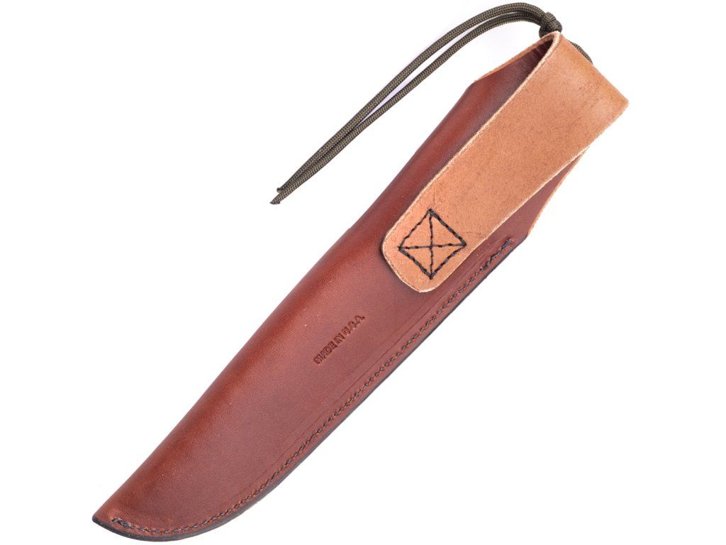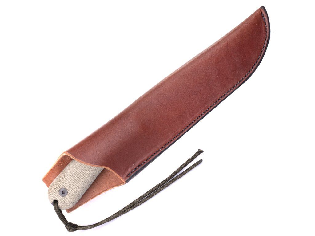 S pevnou čepeľou s hladkou hranou z uhlíkovej ocele 1095 s ochranným práškovým povrchom proti korózií. Prechádza celým nožom (full-tang).