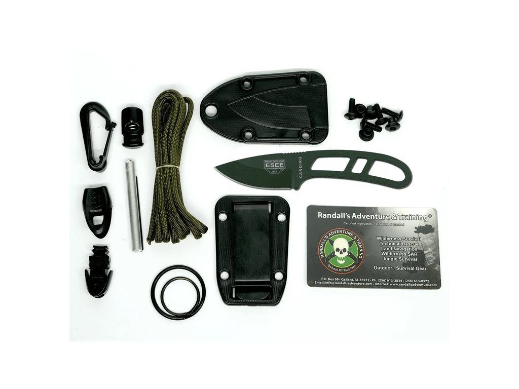 Malý pevný nôž na krk ESEE CAN-OD-KIT-E OD Candiru je vhodný na prežitie, ale aj na každodenné (EDC) nosenie. So súpravou na prežitie.