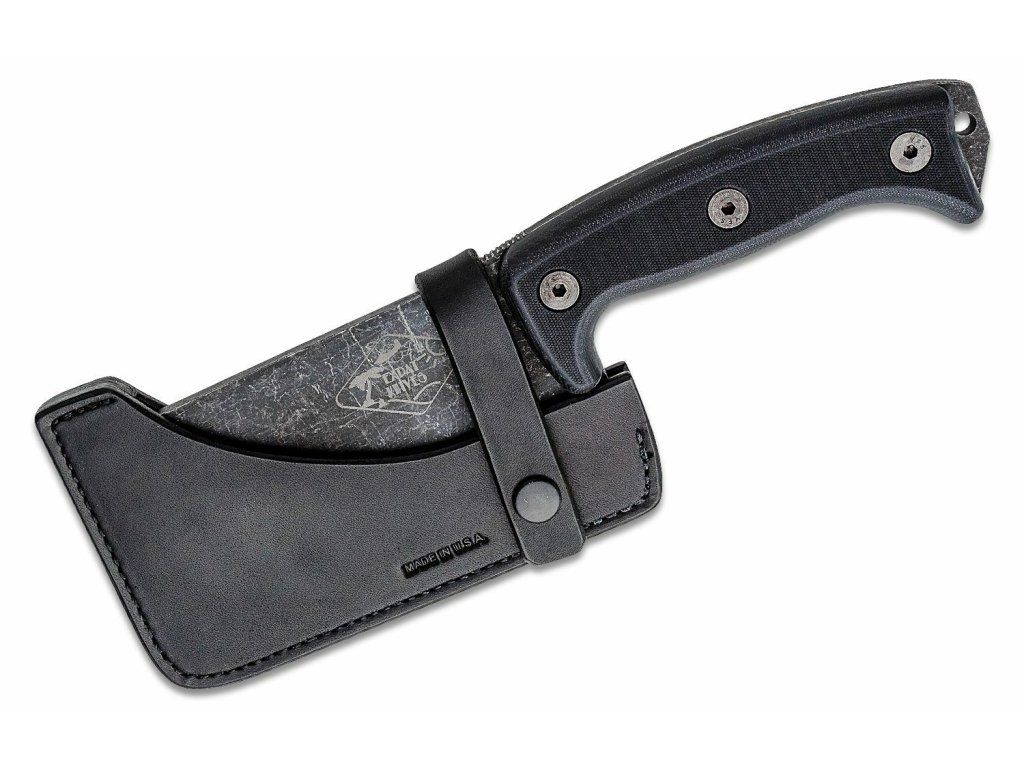 ESEE-CL1 Cleaver všestranný nôž/sekáčik 15,2 cm, celočierna, Stonewash, G10, kožené puzdro