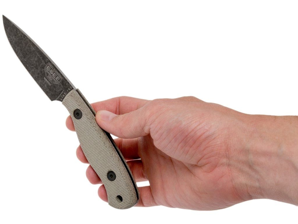 ESEE-JG3-BO Camp-Lore bushcraft nôž 8,9 cm, Stonewash Black Oxide, hnedá, Micarta, kožené puzdro