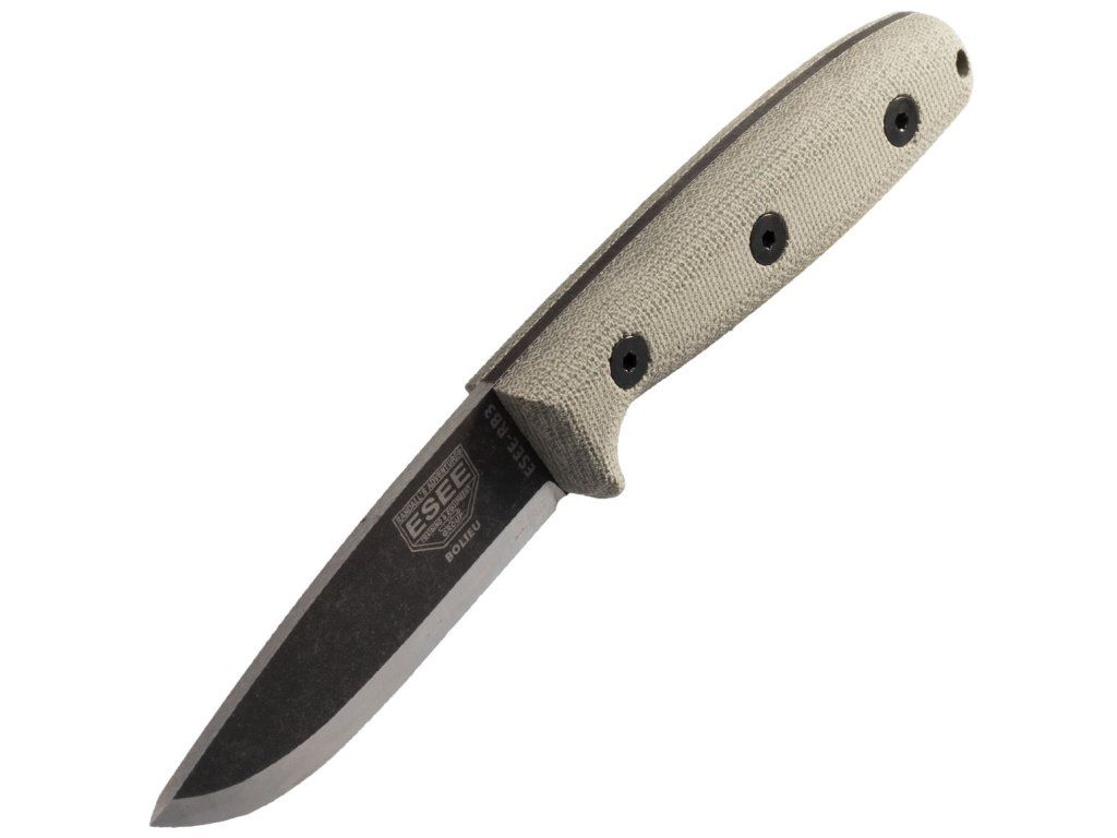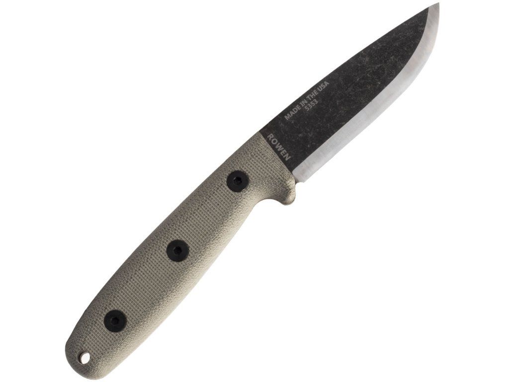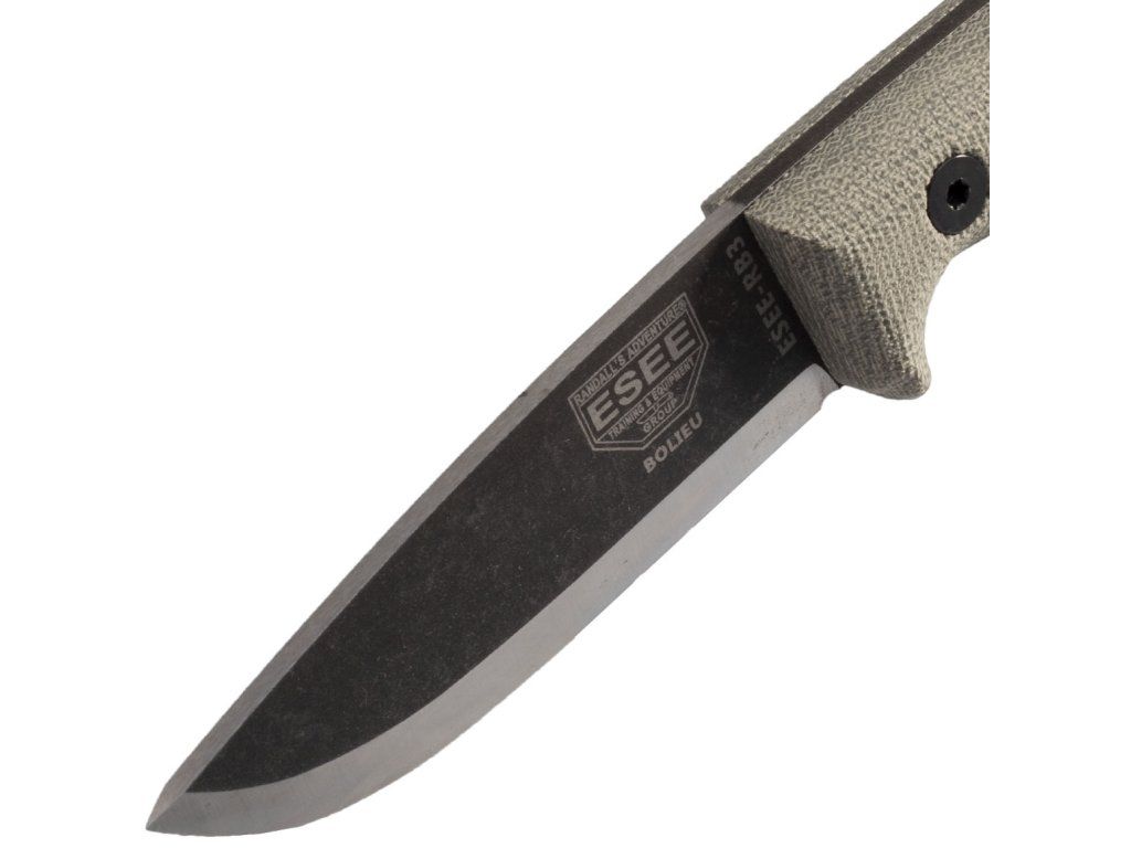ESEE-RB3-BO Camp-Lore bushcraft nôž 8,9 cm, Stonewash Black oxid, hnedá Tan, Micarta, kožené puzdro