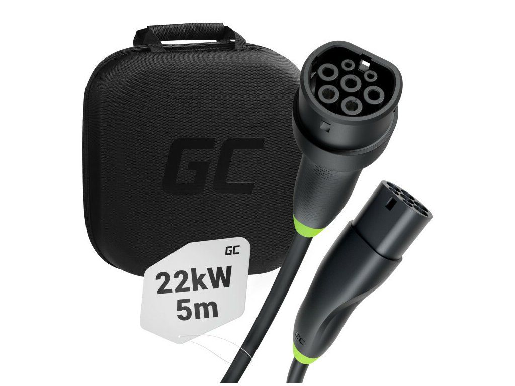 EVKABGC01 Green Cell Snap Type 2 EV Charging Cable 22 kW 5 m for Tesla Model 3 S X Y, VW ID.3, ID.4,