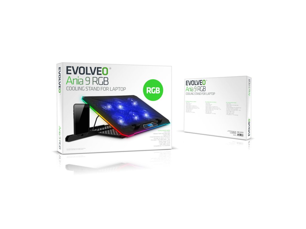 EVOLVEO Ania 9, chladící podložka pod notebook, 6x ventilátor, RGB obvodové podsvícení