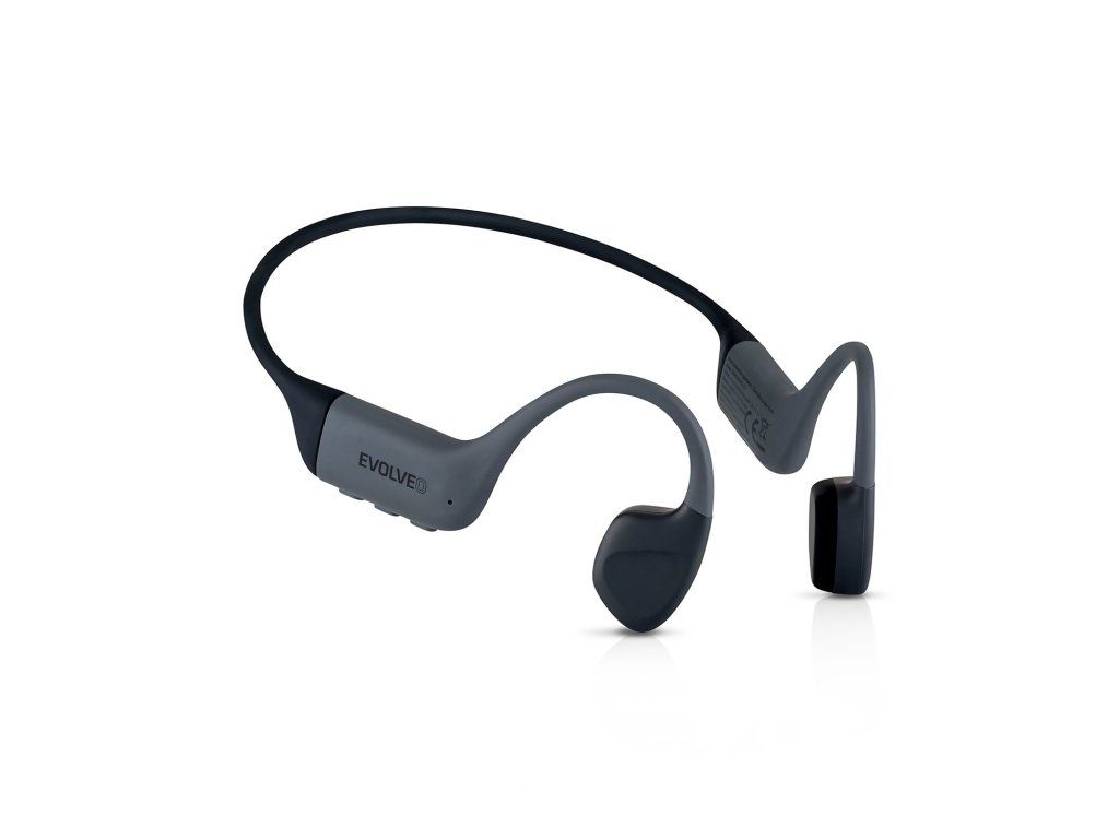 EVOLVEO BoneMax, bezdrátová sluchátka na lícní kosti, MP3 32GB, IPX8, šedé