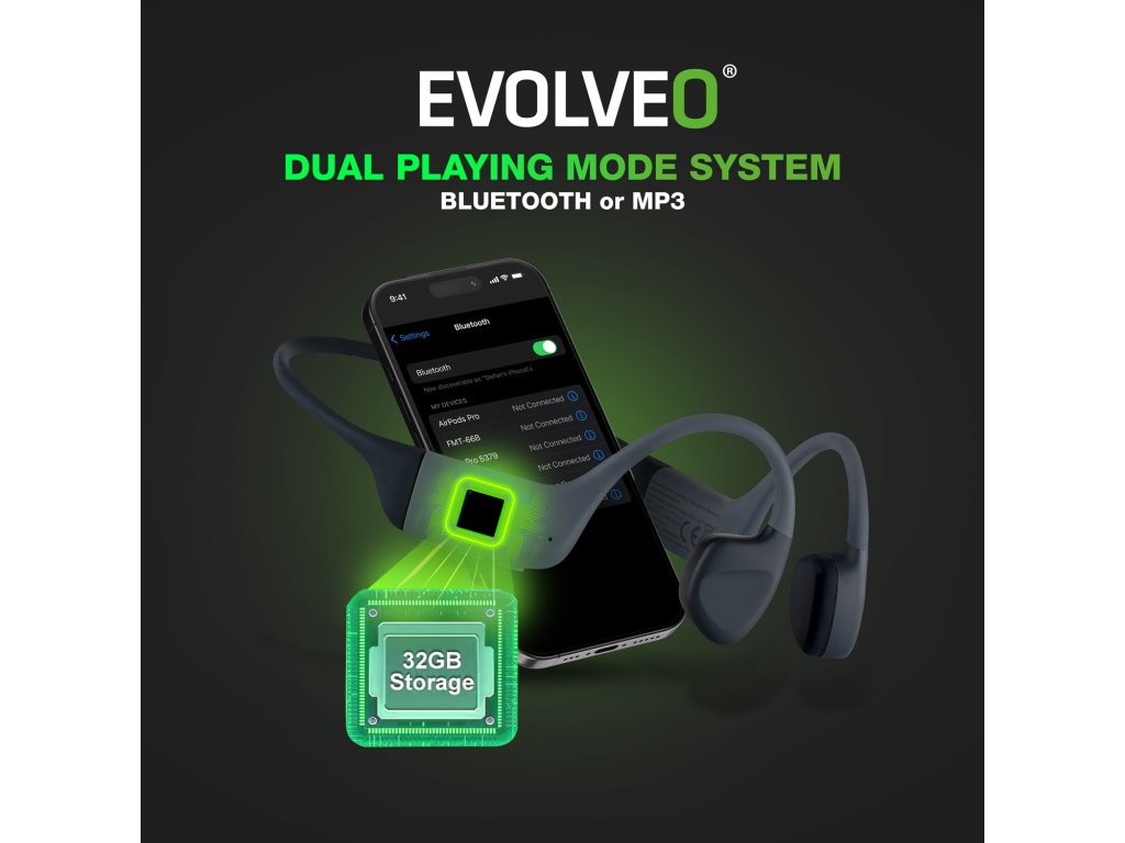 Bezdrátová vodotěsná sluchátka na lícní kosti s interní pamětí EVOLVEO BoneMax