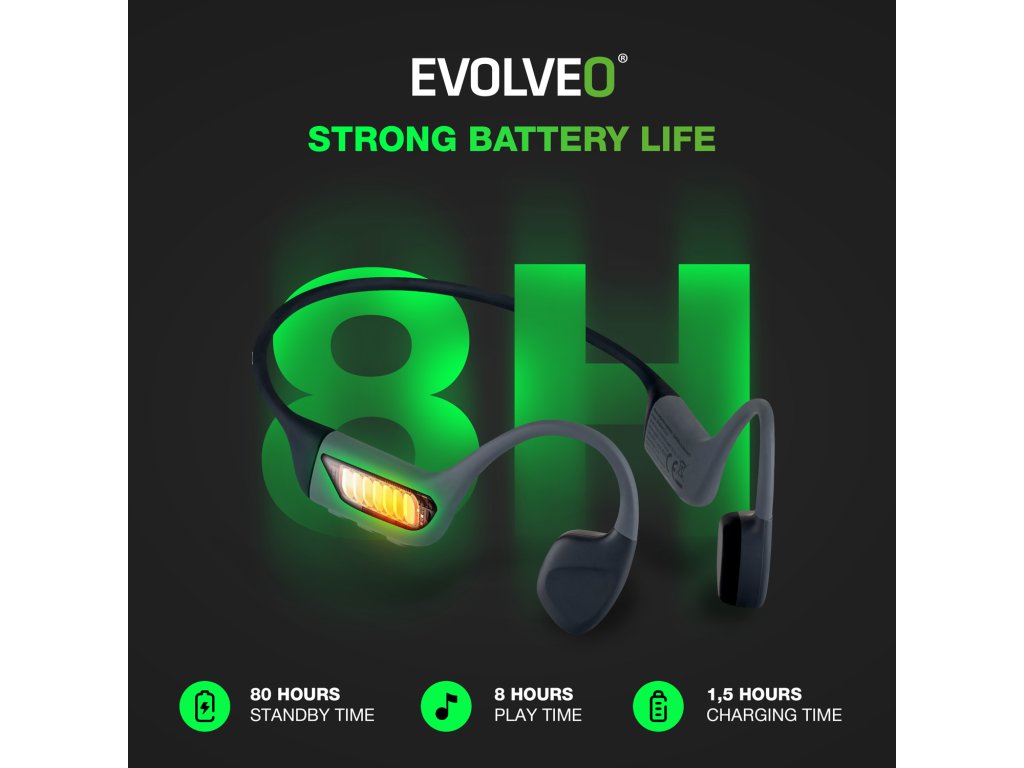 Tato bezdrátová sluchátka s vámi dovedou držet krok, ať už jste kdekoliv a děláte cokoliv. • Ideální volbou jsou pro sportovce – ať už běháte po parku, jedete na kole do práce, nebo se věnujete vodním radovánkám, EVOLVEO BoneMax vám umožní slyšet okolní svět i oblíbenou muziku zároveň. • V rušném velkoměstě vás nabijí energií, ale neochudí o důležité okolní zvuky. Můžete se tak soustředit na hudbu i auta, tramvaje a lidi kolem. • S naprostým přehledem tato sluchátka zvládnou i hlučné pracovní provozy – můžete s nimi být produktivnější díky svému speciálnímu soundtracku, ale zároveň uslyšíte i kolegy nebo třeba pípání strojů. • Pro outdoorové nadšence jsou sluchátka EVOLVEO BoneMax nepostradatelným doplňkem – na výletech, při túrách do hor i během kempování si muzikou rozjasníte každý moment, ale realita vás nepřekvapí. • V kanceláři se můžete s hudbou ve sluchátkách lépe koncentrovat na práci, ale pořád zvládáte rychle zareagovat na kolegy, šéfa či telefonát. • Při řízení auta se s nimi můžete plně soustředit na provoz a zároveň si bez nebezpečných kompromisů užívat oblíbené songy.Specifikace: