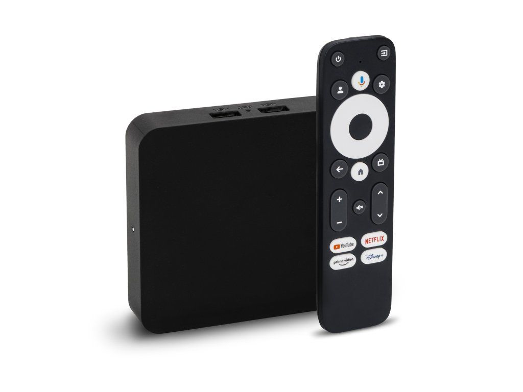 • Google TV box • podpora 4K Ultra HD • úložiště 32 GB • RAM paměť 2 GB • operační systém Android 12 • podpora aplikací Netflix, Disney+, Prime video, Oneplay, HBO Max, Apple TV, Skylink Live TV, YouTube, Spotify