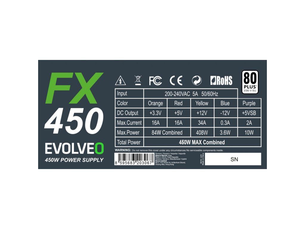 EVOLVEO FX 450, zdroj 450W ATX, 14cm, tichý, 80+ White, záruka 3 roky