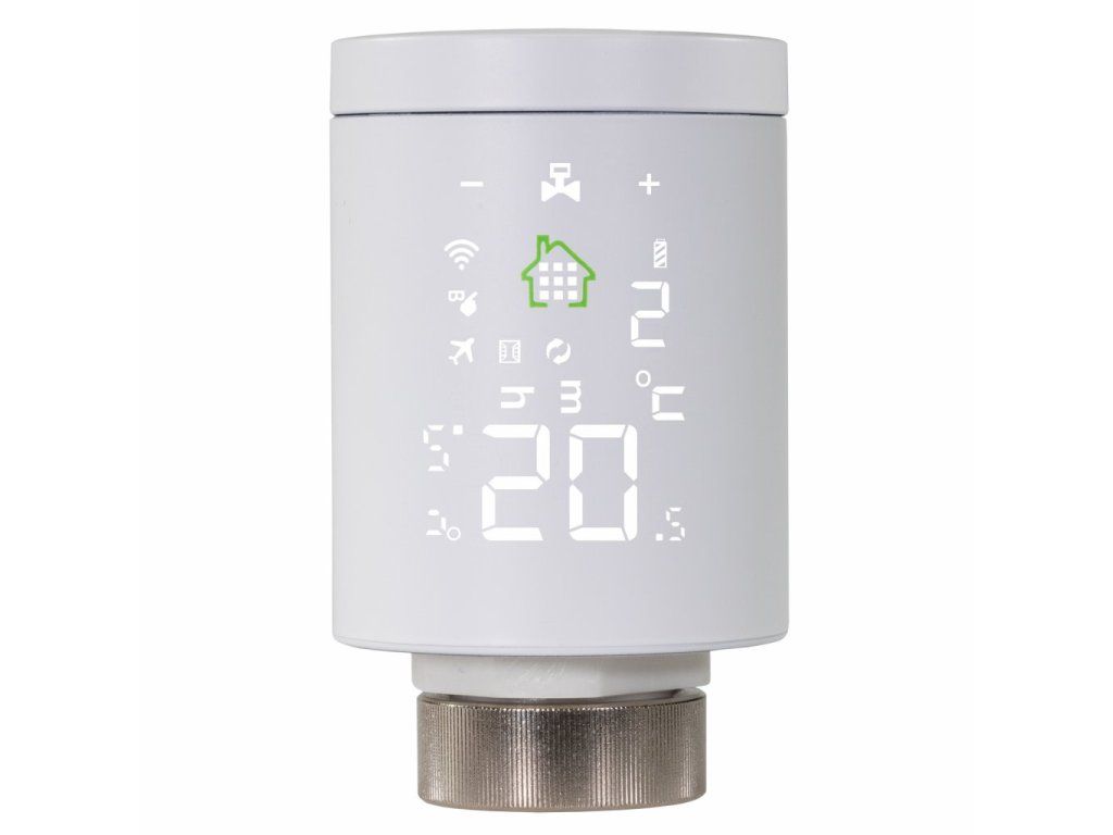 Chytrá bezdrátová termostatická hlavice na radiátor, set obsahuje dva kusy + centrální Wi-Fi jednotku, ovládání přes aplikaci Android/iOS v češtině, white paper LED display s dotykovým ovládáním, kompatibilní s Google Assistant a Amazon Alexa, denní a týdenní plánování, připojení na závit M30 a kompatibilní s ventily RA, RAV, RAVL.Tichý chod a úspora