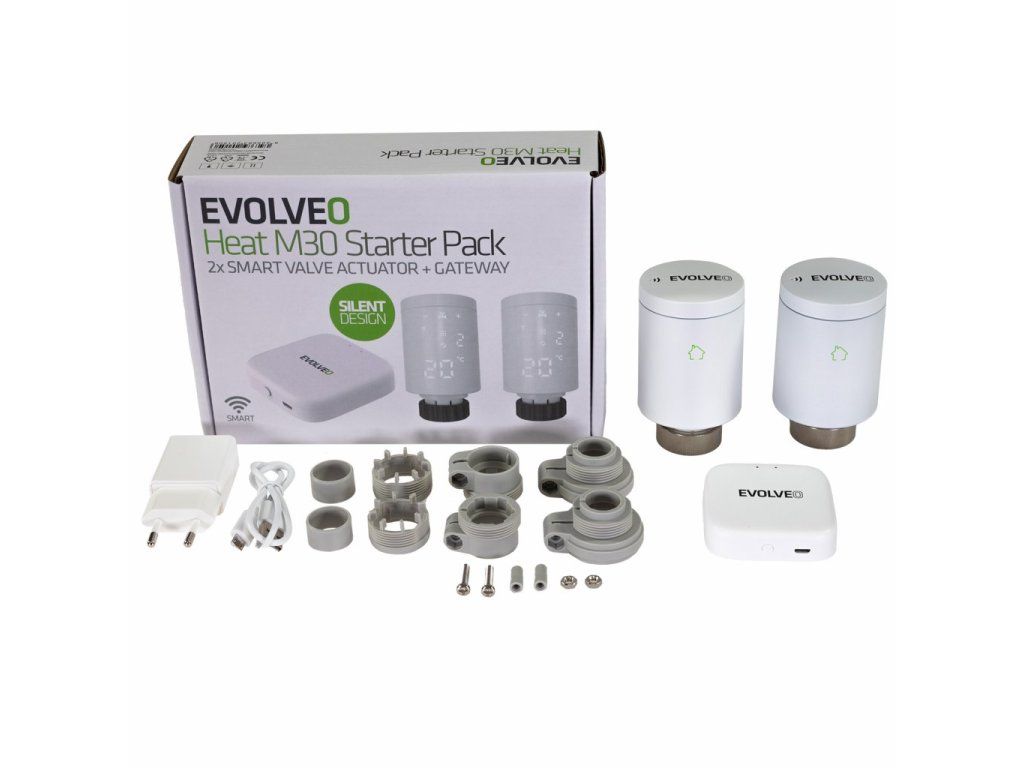 EVOLVEO Heat M30 Starter Pack, 2× chytrá termostatická hlavice na radiátor & centrální jednotka