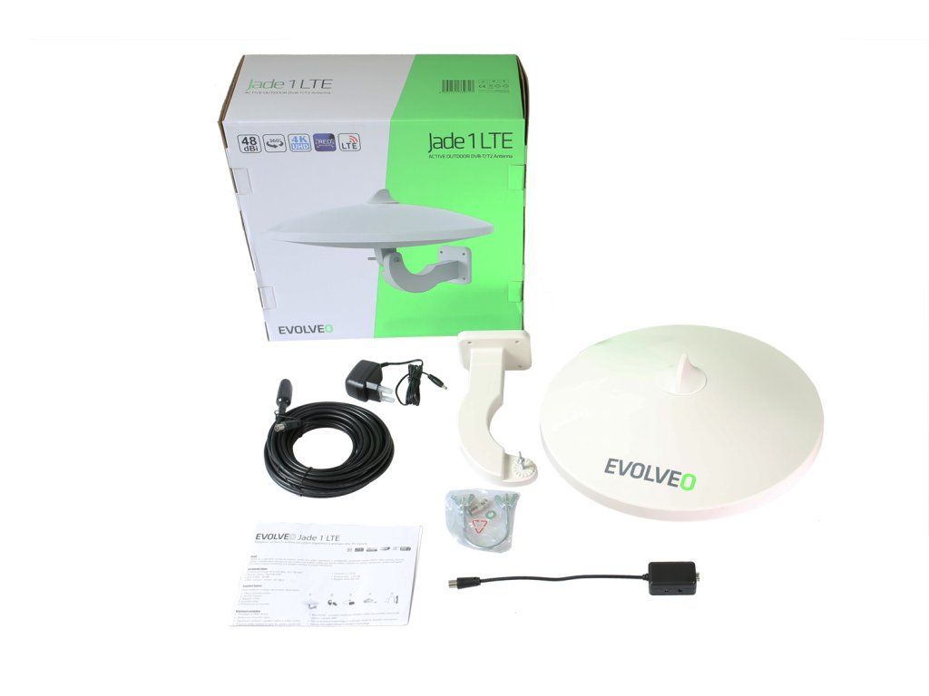 • anténa • držák • adaptér 230V • kabel 10 m • redukce IEC female/F male • návod TECHNICKÁ PODPORA A SERVIS: podpora@evolveo.czDodatočné parametre