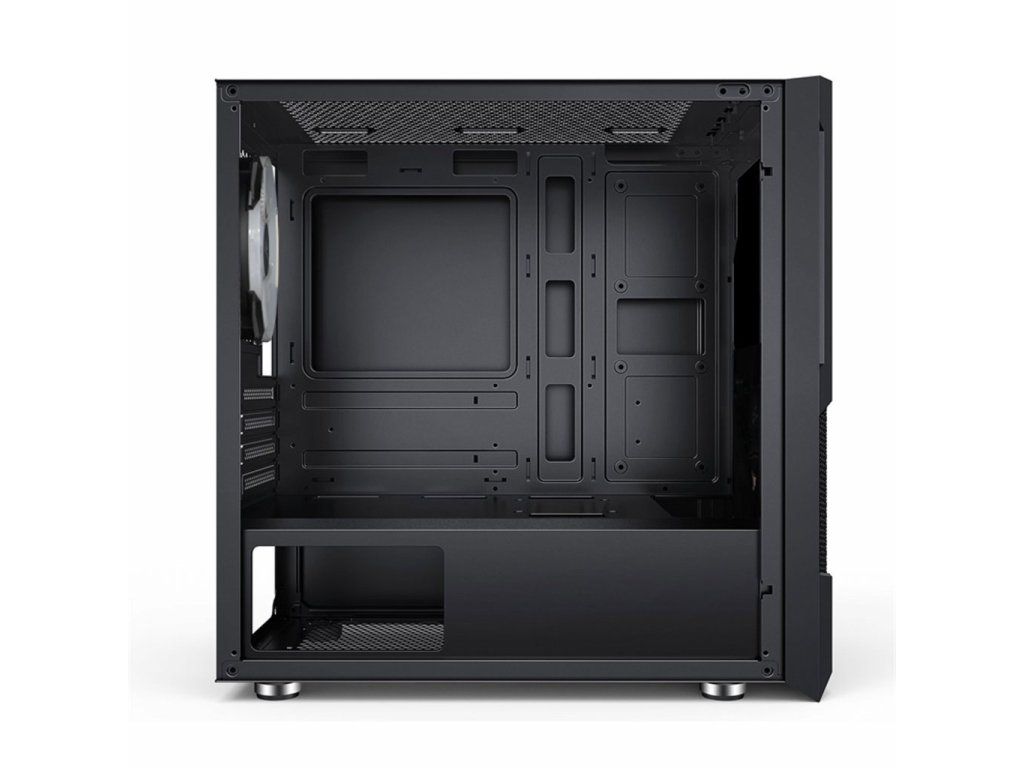 EVOLVEO M5, case mATX Herní mATX skříň s instalovanými RGB rainbow 120 mm ventilátoremy a bočnicí z temerovaného skla. Skříň je určená pro základní desky podporující platformu Intel i AMD. Mimo formátu mATX je kompatibilní i s formátem Mini ITX. Napájecí zdroj se umísťuje do dolní části skříně. Spodní mřížka je osazena vysouvacím prachovým filtrem. Ovládání ventilátorů je možné pomocí připojení k základní desce. Základní specifikace 2x RGB Rainbow Ring 120 mm ventilátory 2x 3.5'' interní 4x 2,5 '' SSD maximální výška CPU chladiče: 160 mm maximální délka VGA karty: 345 mm výsuvný spodní prachový filtr pod zdrojem kompatibilní základní desky: ATX, Micto-ATX, Mini-ITX Přední I/O Porty a ovládání 1 x USB 3.0 2 x USB 2.0 1 x HD audio Ventilátory 1 x 120 mm zadní ventilátor - instalovaný 2 x 120 mm horní ventilátory - nejsou součástí balení 2x 120mm přední ventilátory – 1x instalovaný Rozměry H 402 x Š 205 x D 392 mmDodatočné parametre