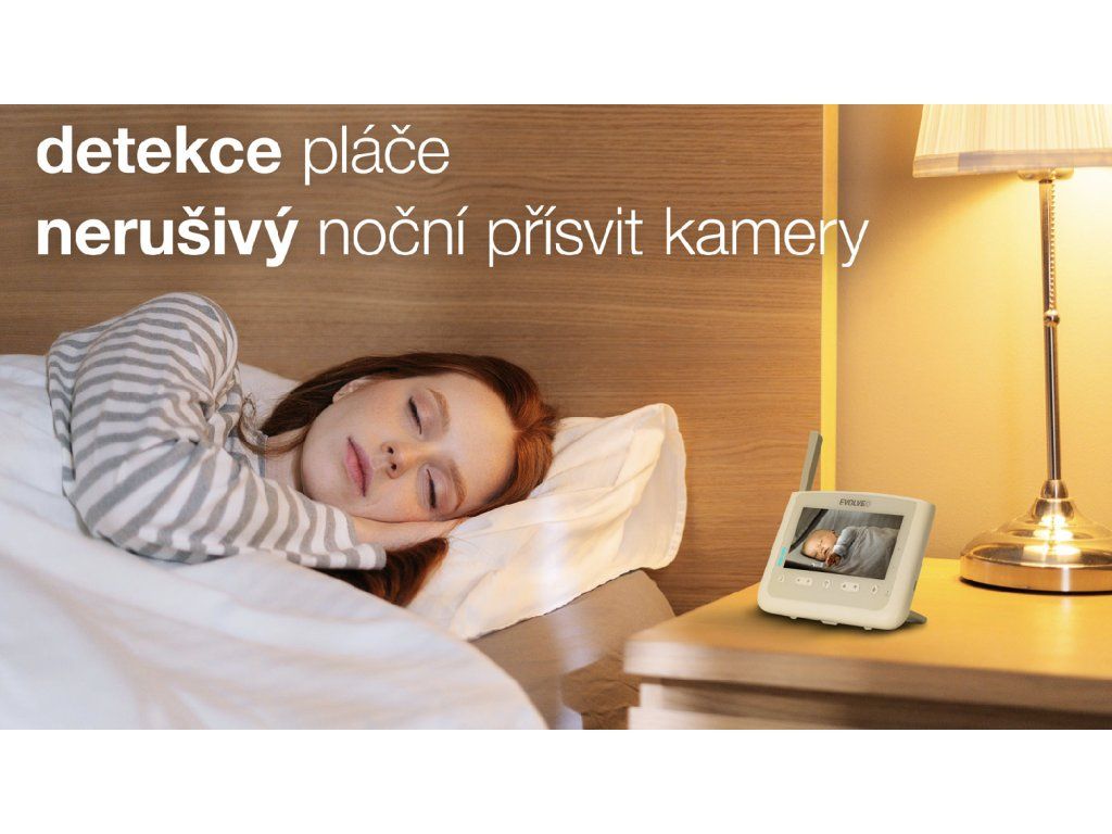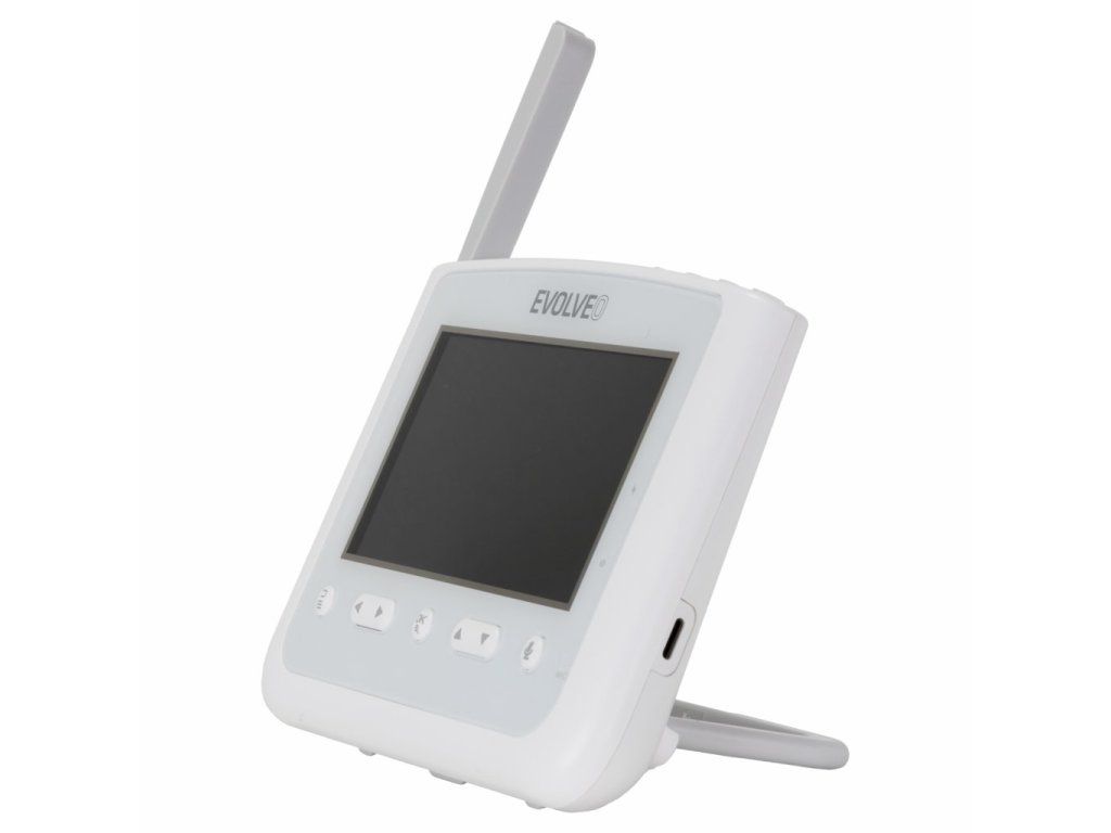 • EVOLVEO BabyMonitor NL4 dětská video chůvička, • dosah až 300m na otevřeném prostranství, • noční lampa, ukolébavky, otočná 360° kamera s naklápěním.
