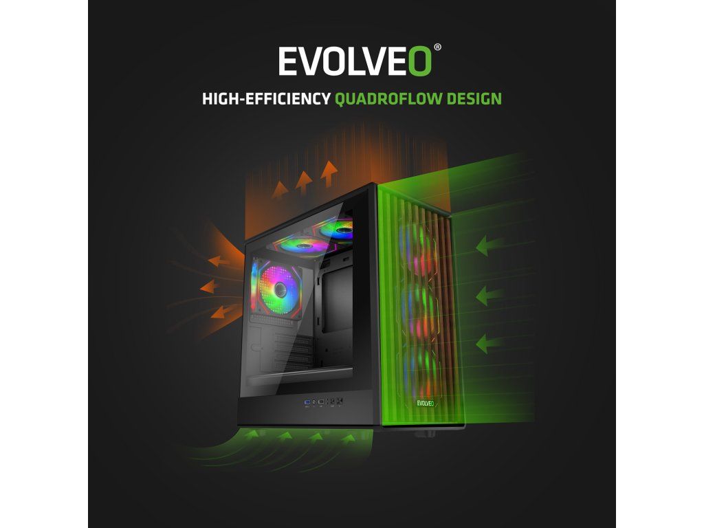 EVOLVEO Panthera, skříň mATX, 6x ARGB ventilátor 120mm, dřevěný přední panel + skleněná bočnice