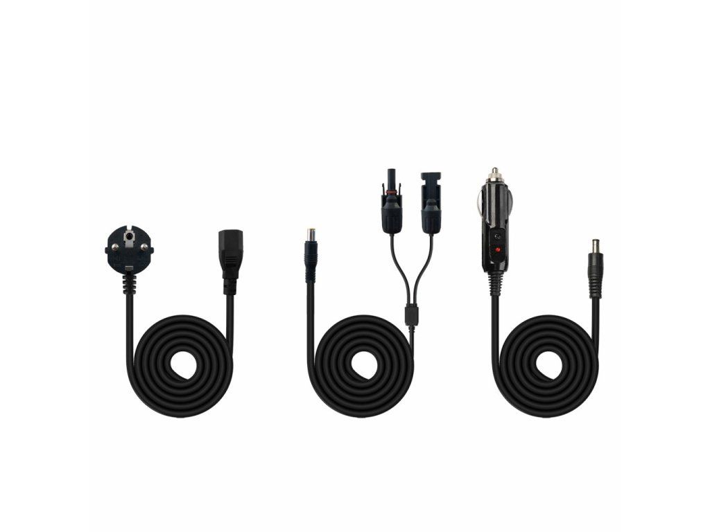 Součástí balení je sada nabíjecích kabelů. Tato sada obsahuje síťový kabel, nabíjecí kabel do autozásuvky a solární dobíjecí kabel. Díky těmto kabelům budete moci pohodlně nabíjet svou nabíjecí stanici nejen ze zásuvky, ale také během jízdy autem nebo pomocí solárního panelu.SPECIFIKACE: